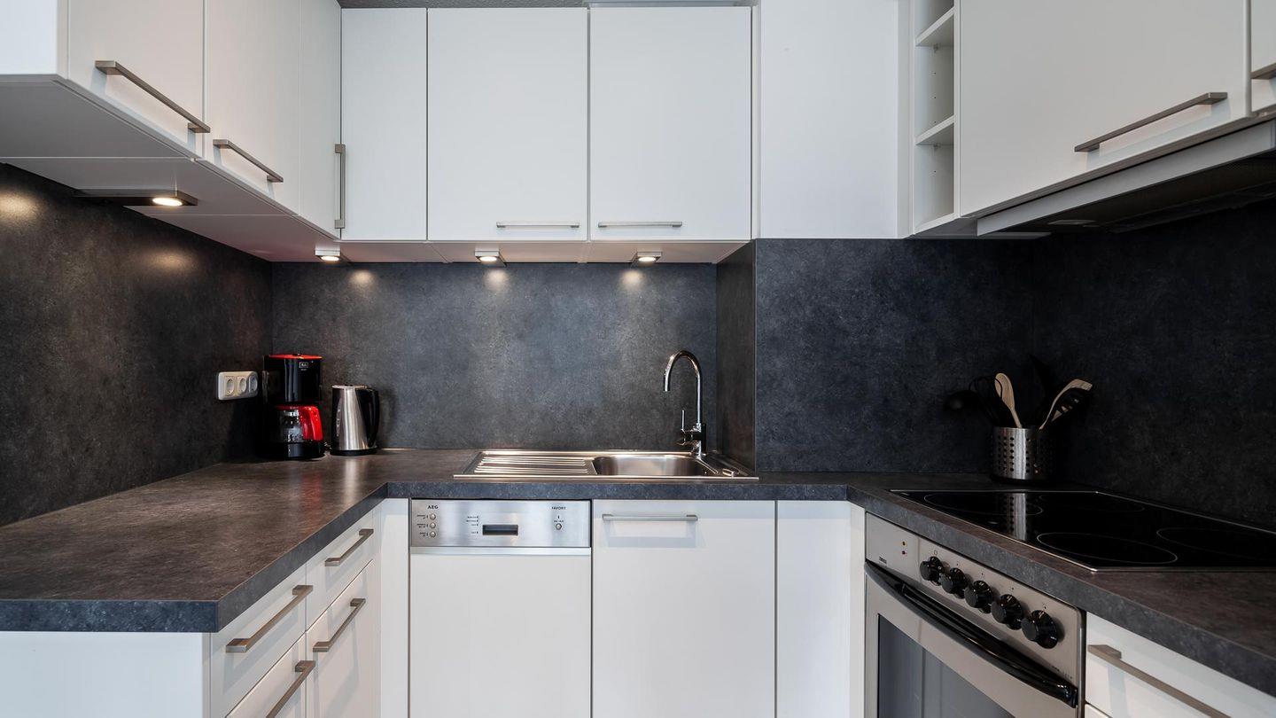 Die offene Küche ist mit allen wichtigen Küchengeräten für Ihren Ferienaufenthalt ausgestattet.