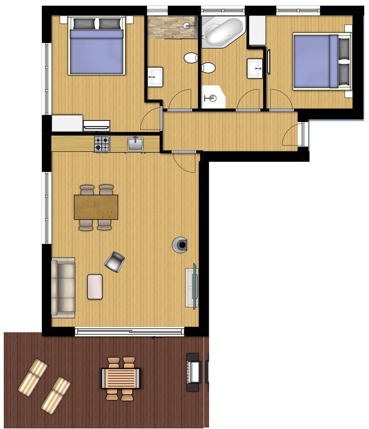 Diese schöne, helle Ferienwohnung in toller Strandlage für 4 Personen bietet auf 90 m² zwei Schlafzimmer, zwei Bäder, ein Wohn-/Esszimmer mit offener Küche sowie eine große Terrasse. Ihr Auto hat einen Stellplatz direkt am Haus.