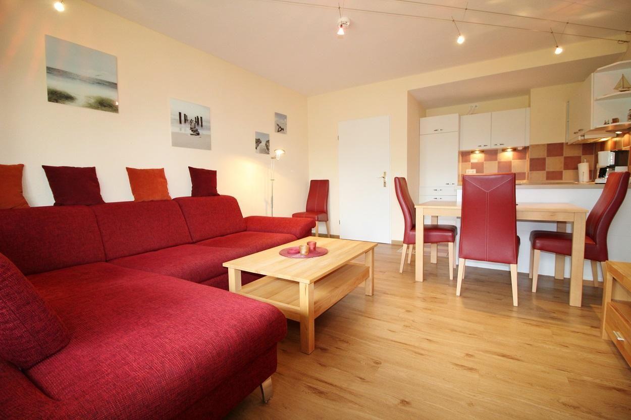 Das hell eingerichtete Wohnzimmer bietet ausreichend Platz für 3 Personen. Ein hochwertiges Schlafsofa lässt Sie wie im eigenem Bett schlafen und ist für einen Erwachsenen ausreichend