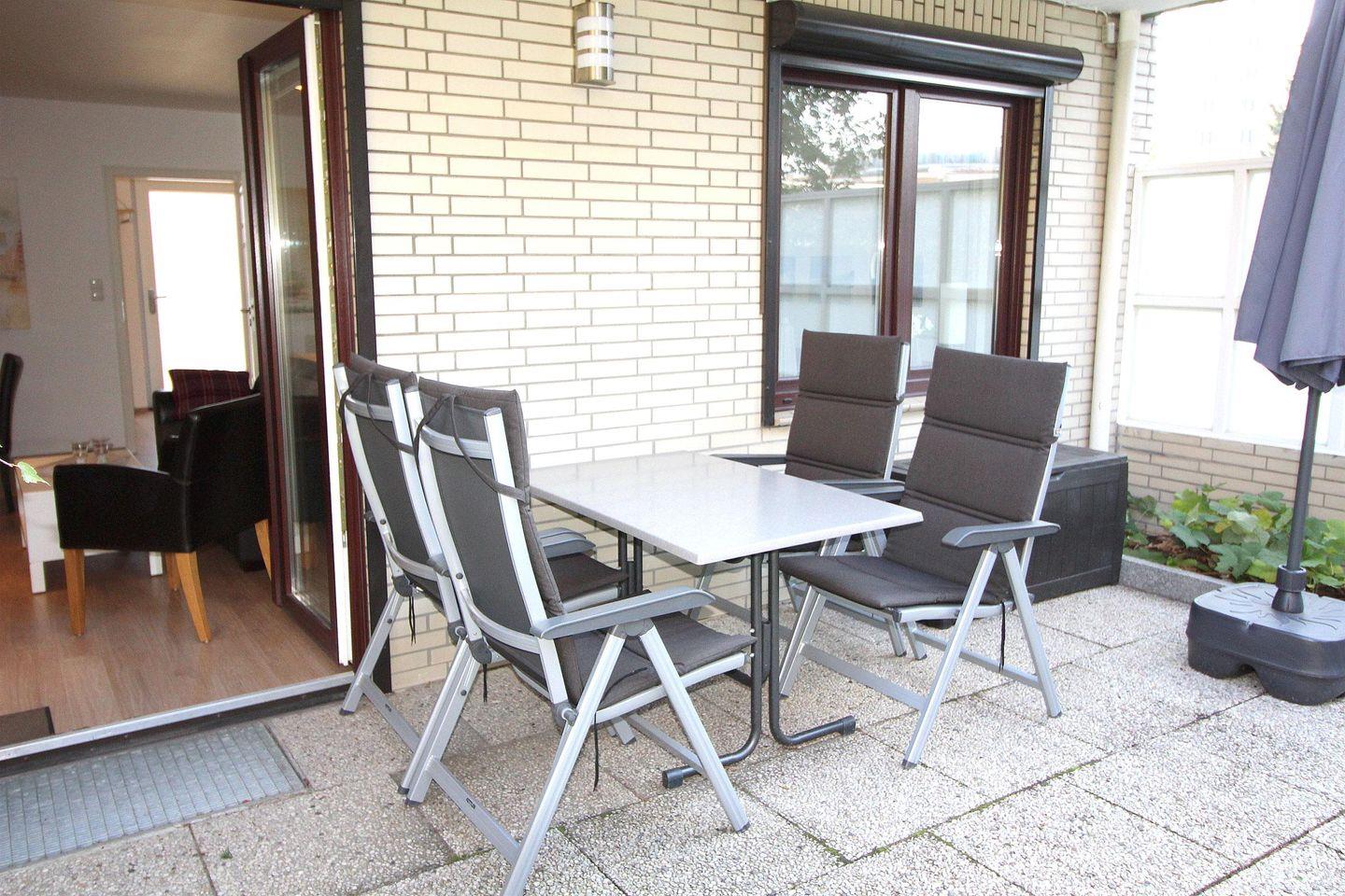 Ferienwohnung in Grömitz: Terrasse, Gartenblick & 250 m zum Strand