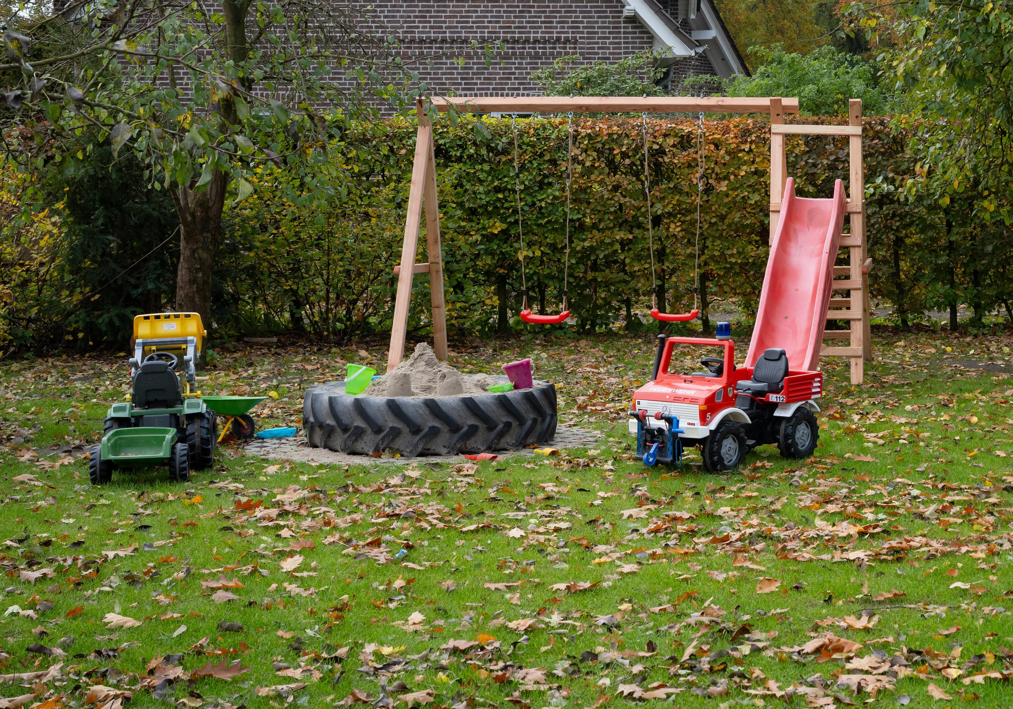 Für die kleinen Abenteurer bieten wir einen gut Ausgestatteten Spielplatz und Fahrzeuge um den neu gestalteten Garten zu erkunden.