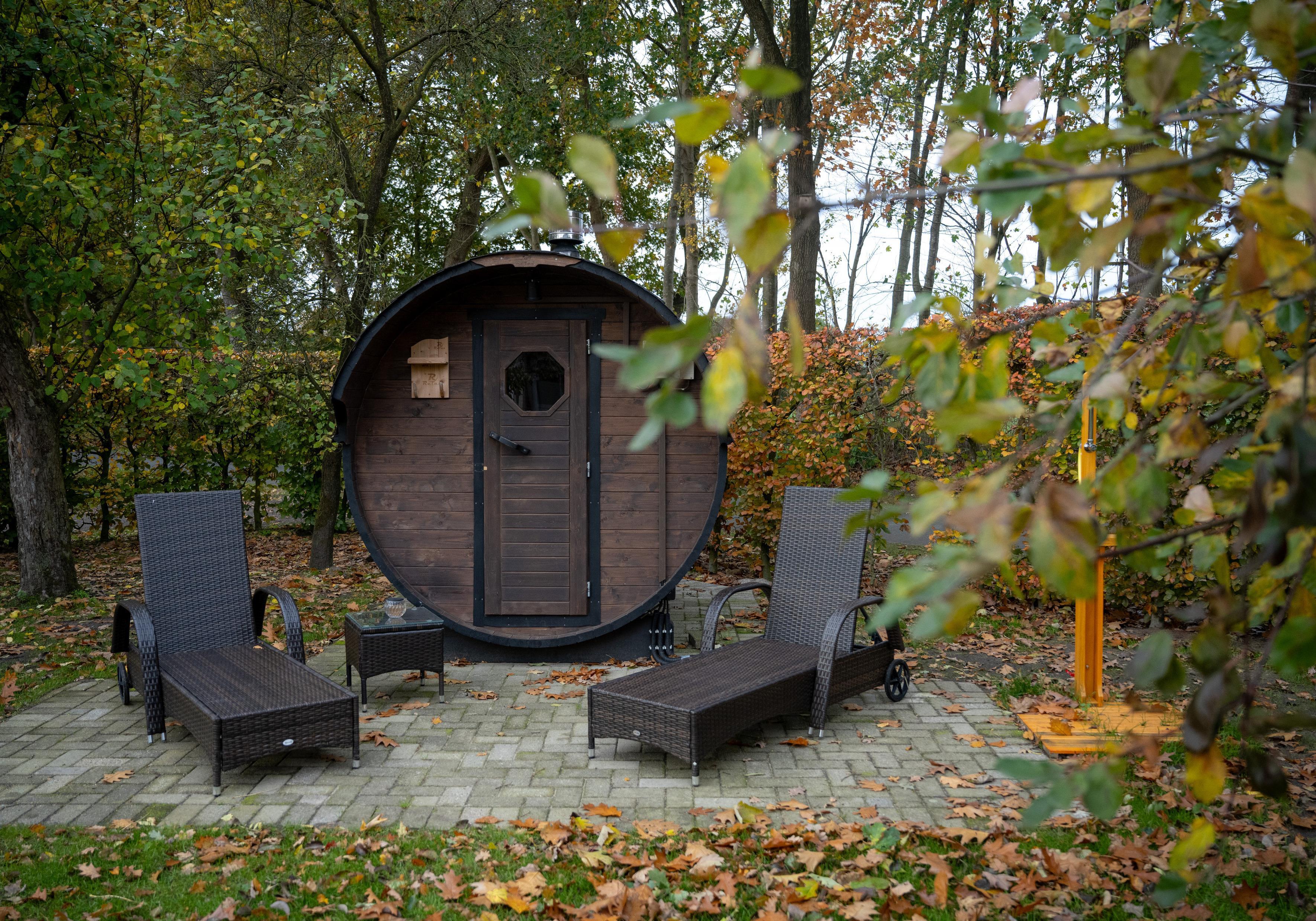 Auch unsere Faßsauna steht Euch zur Entspannung zur freien Verfügung.