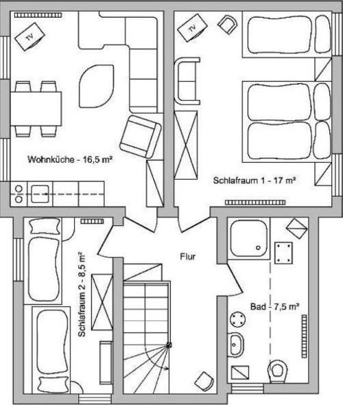 Unsere helle und freundliche Ferienwohnung verfügt über 3 Schlafzimmer. Ein Schlafzimmer mit Doppelbett und Einzelbett. Im zweiten Schlafzimmer finden Sie zwei Einzelbetten. Im Erdgeschoss habe wir für Sie ein Einzelzimmer mit separater Toilette eingerichtet. Ihre Betten sind bei Anreise natürlich bezogen, Dusch- und Handtücher sind vorhanden.