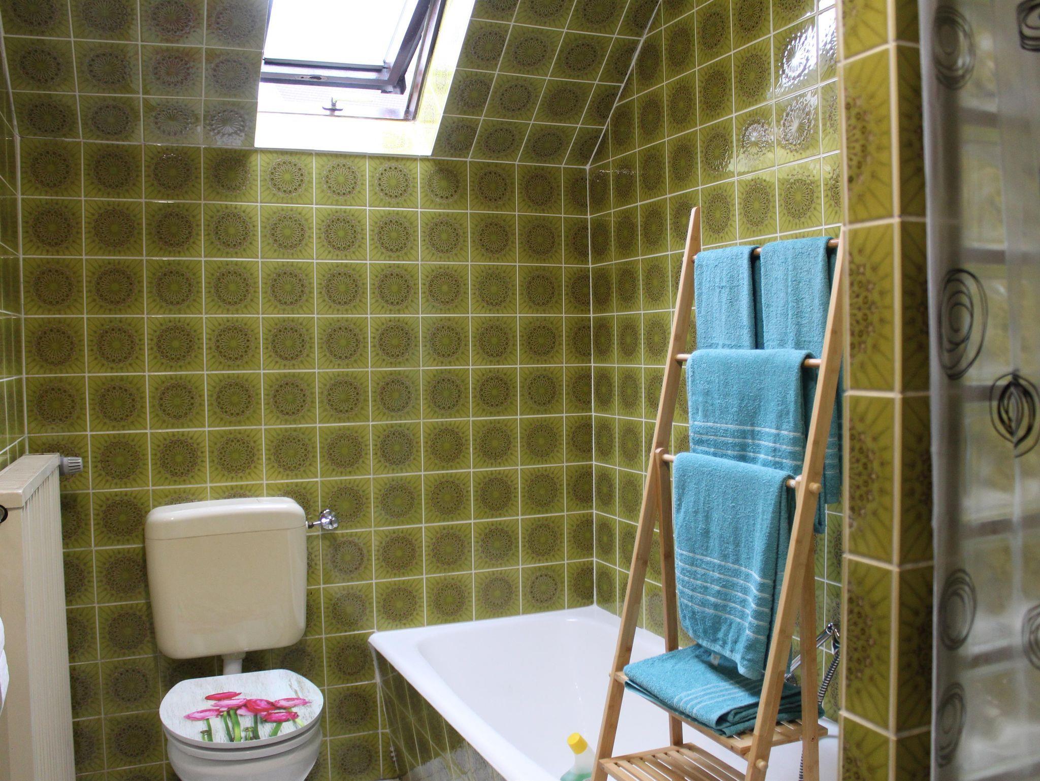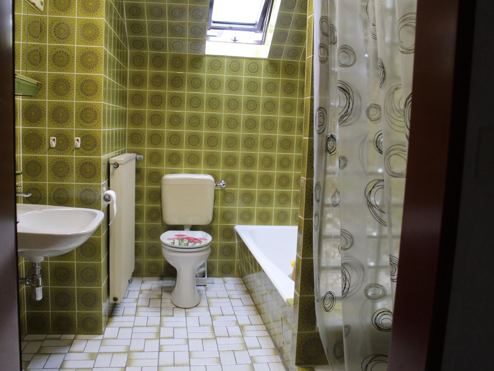 Ein Dachfenster im Bad sorgt für angenehmes Tageslicht und eine freundliche Atmosphäre.