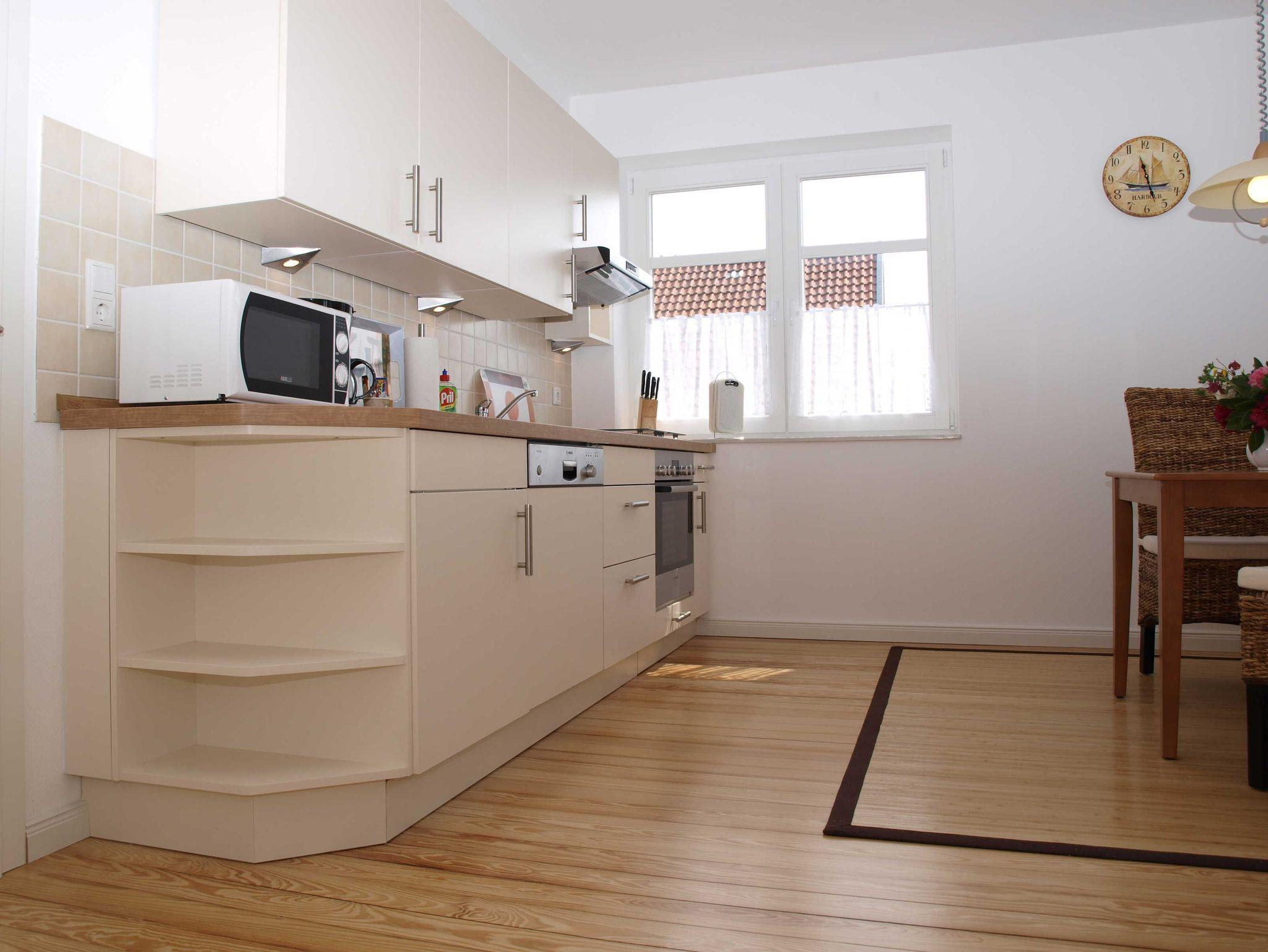 Im 1. Obergeschoss befindet sich die Wohnung Bootsdeck. Ihr Wohnzimmer mit Blick auf den Deich sowie die vollständig eingerichtete Küche laden zum Verweilen ein. Vom Schlafzimmer gelangen Sie direkt auf Ihren Balkon. Der Balkon erlaubt nicht nur den ungestörten Blick in die schönen Obsthöfe des Alten Landes, sondern lädt zum Frühstück oder Abendessen ein.