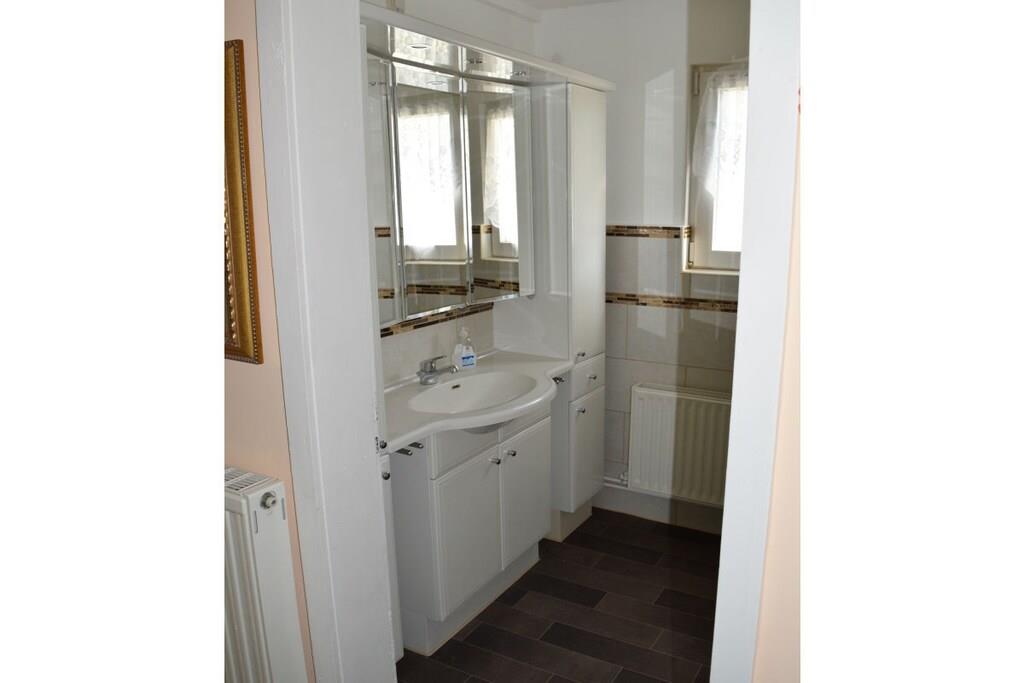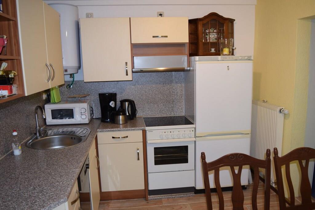 Stueetage: (entre, Stue(enkeltsovesofa, Fjernsyn), Køkken(spisebord, kakkelovn, kogeplade, elkedel, brødrister, kaffemaskine, ovn, mikrobølgeovn, opvaskemaskine , køleskab, fryser), soveværelse(dobbeltseng, Fjernsyn, radio), soveværelse(enkeltseng, enkeltseng), soveværelse(enkeltseng, dobbeltseng, Fjernsyn), badeværelse(bruser, håndvask, toilet, vaskemaskine, føntørrer, Håndklæder inkl.), badeværelse(bruser, håndvask, toilet, føntørrer, Håndklæder inkl.)) vaskemaskine, terrasse, have, havemøbler, parkering, Parasol, cykler til rådighed, strygebræt, strygejern