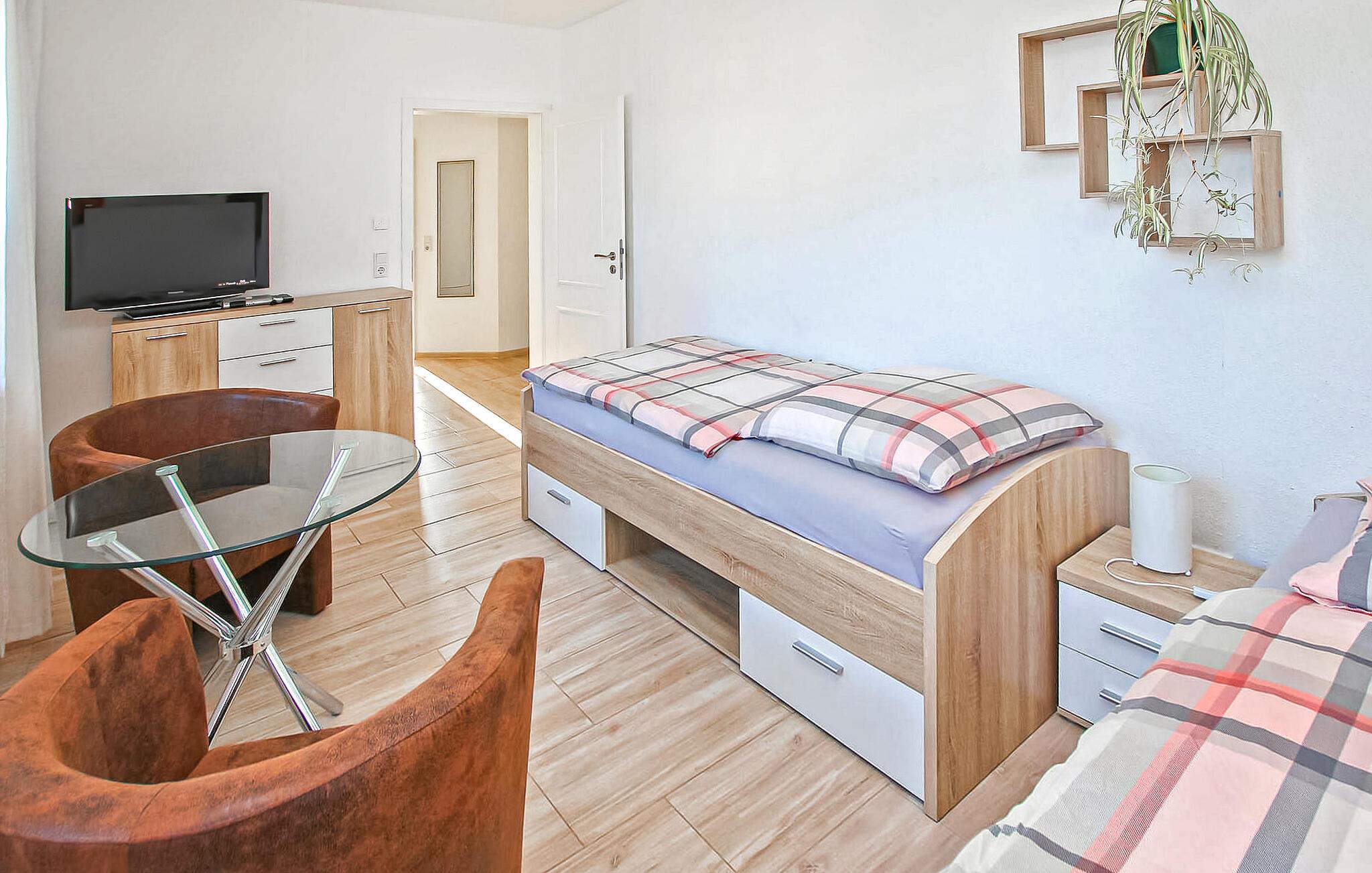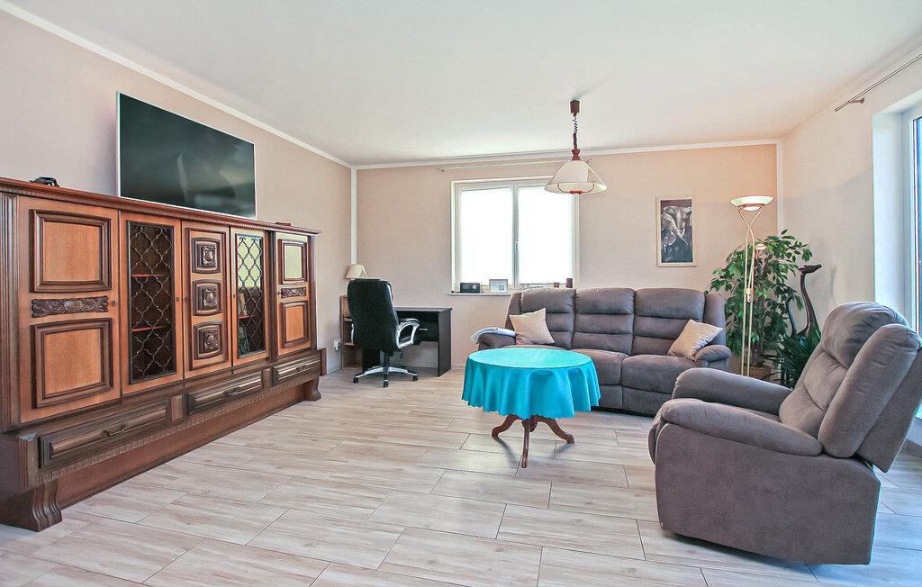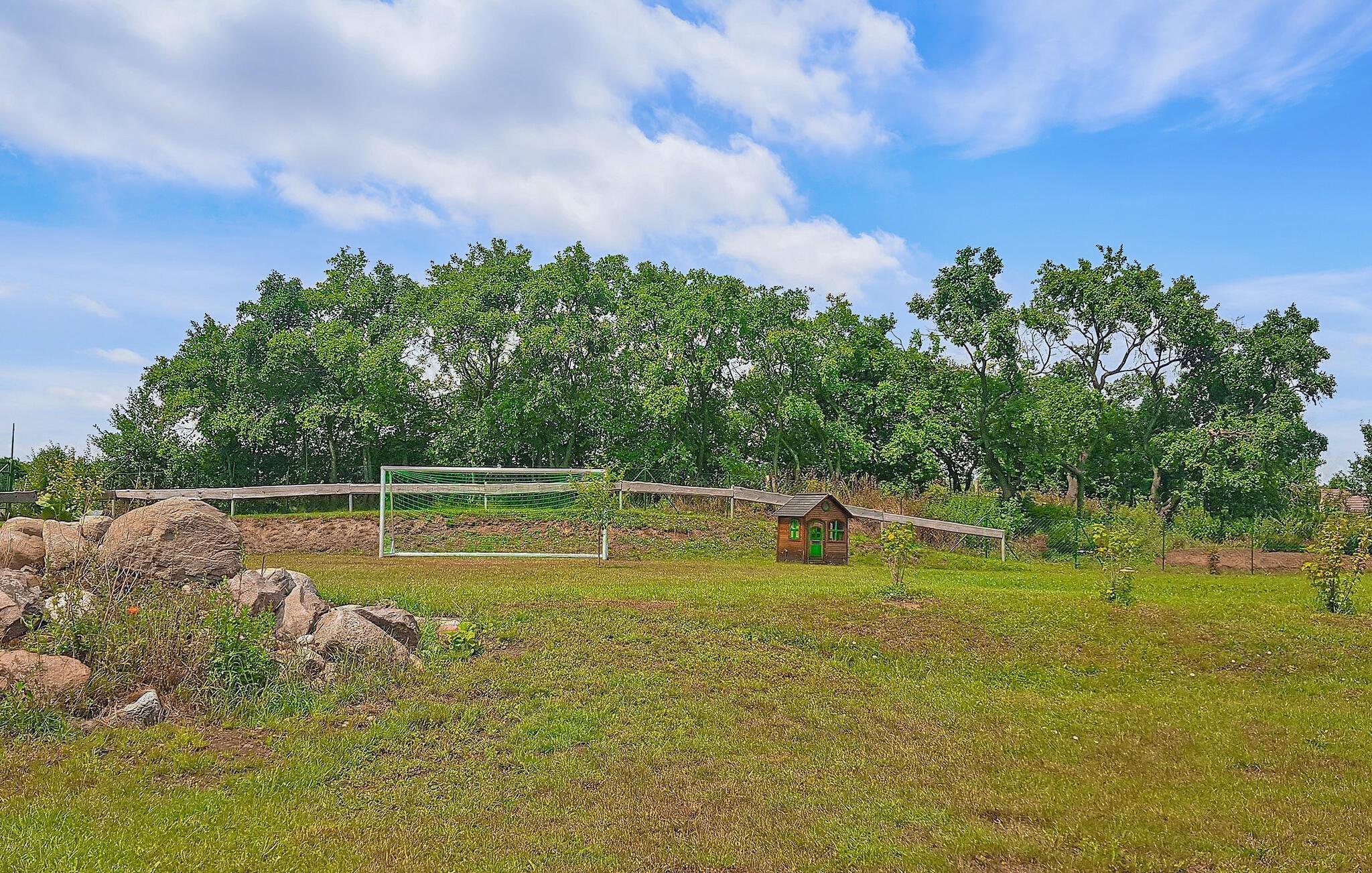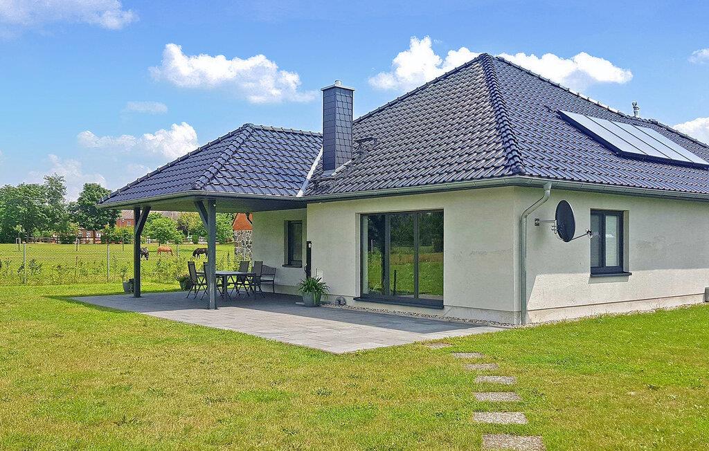 Roligt og landligt ligger feriehuset for op til 4 voksne og 1 baby, bygget i 2016 i bungalowstil, på en separat og helt indhegnet grund på ca. 2.500 m². Der er ca. 5 km til et smukt badeområde ved Dolgen-søen, og der er butikker og restauranter i Feldberg, ca. 11 km. Det cirka 129 m² store, ikke-ryger hus, som er handicapvenligt og udstyret med gulvvarme, har en stor stue (polstrede møbler, fladskærms-tv, pejs, spisebord, skrivebord) med åbent køkken (induktionskomfur) , ovn, køleskab, fryser, opvaskemaskine, mikroovn, diverse små køkkenmaskiner ), to soveværelser (hver med 2 enkeltsenge, 1 x der kan sættes sammen, 1 x TV), et stort badeværelse (2 håndvaske, gulv-). niveau bruser, toilet, hårtørrer) og en rummelig gang. Der er også en stor, overdækket og møbleret terrasse, grill, liggestole, en parkeringsplads, cykelkælder, legeområder på den store ejendom (inklusive fodboldmål for unge, 5x2m), bordfodbold, gratis Wi-Fi og en barneseng på forespørgsel Bortskaffelse. Den samlede pris inkluderer slutrengøring, el, vand, sengelinned, håndklæder og 1 x brænde. Kæledyr er ikke tilladt i denne ejendom. Ollendorf er et distrikt i den lille landsby Grünow, som ligger på kanten af Feldberg-sølandskabet og er indgangsporten til Müritz Nationalpark. Serrahn bøgeskovene, som er en del af verdens naturarv, ligger i umiddelbar nærhed, og det omkringliggende område, rigt på skove og søer, indbyder til lange ture til fods, på cykel eller på vandet. Et smukt badeområde ved søen Dolgen ligger ca. 5 km væk. I Ollendorf er der en ridestald med en børnezoo og et keramikværksted, og i Grünow er der en smuk legeplads og en snackhave. Butikker, caféer og restauranter findes i Kneipp-kurstedet Feldberg, ca. 11 km væk. Udover Kneipp spa-parken er der også en passagerbådtur, smukke strande og en bred vifte af vandsport. Vi anser denne bolig for tilgængelig for vores gæster med nedsat mobilitet, men vi opfordrer alle gæster til at overveje boligens egnethed baseret på deres egne behov.