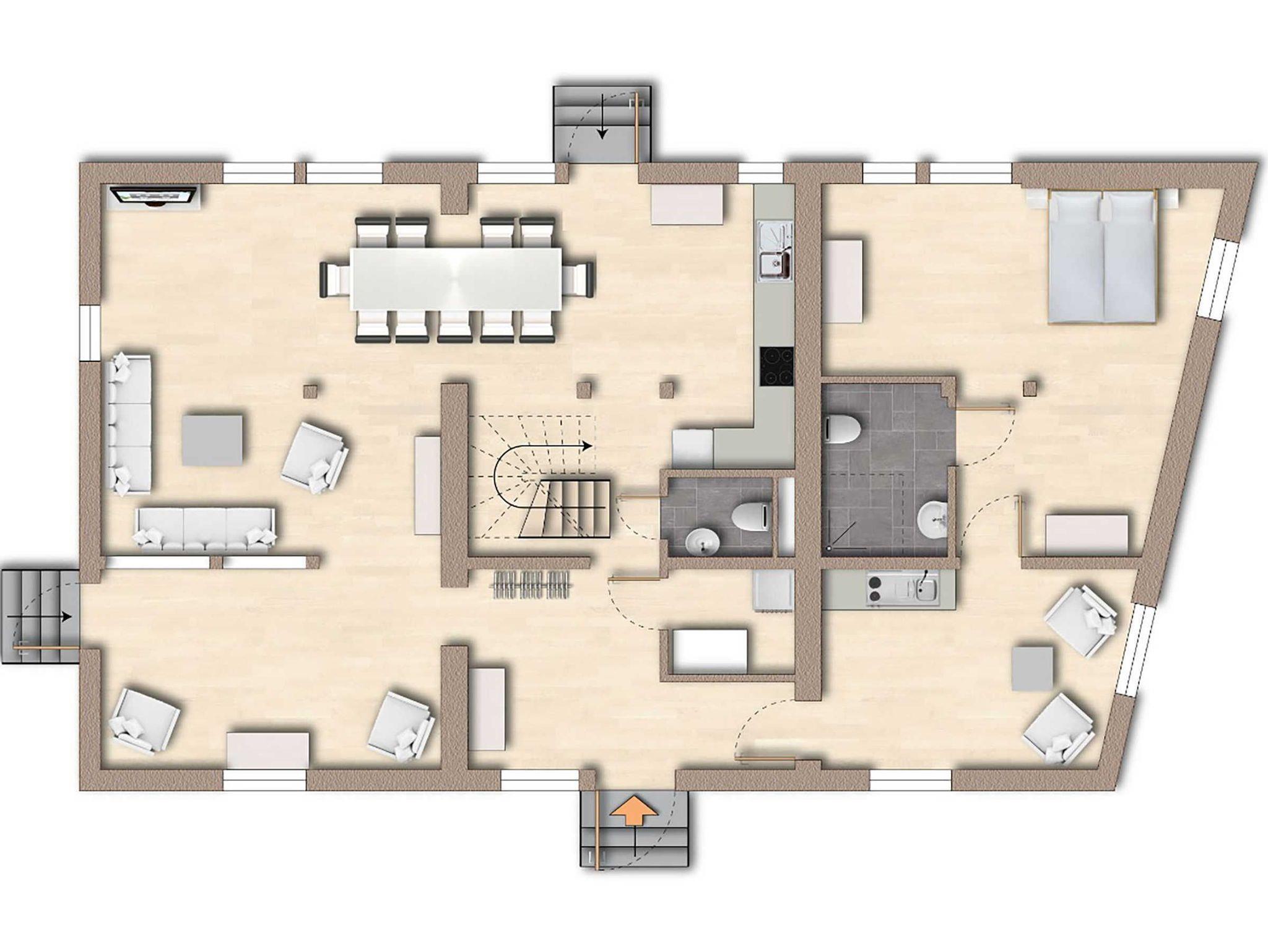 Im Innenhof befindet sich eine Hofsauna, Benutzungsgebühr pro Anreise/pro Woche 85,00 Euro.