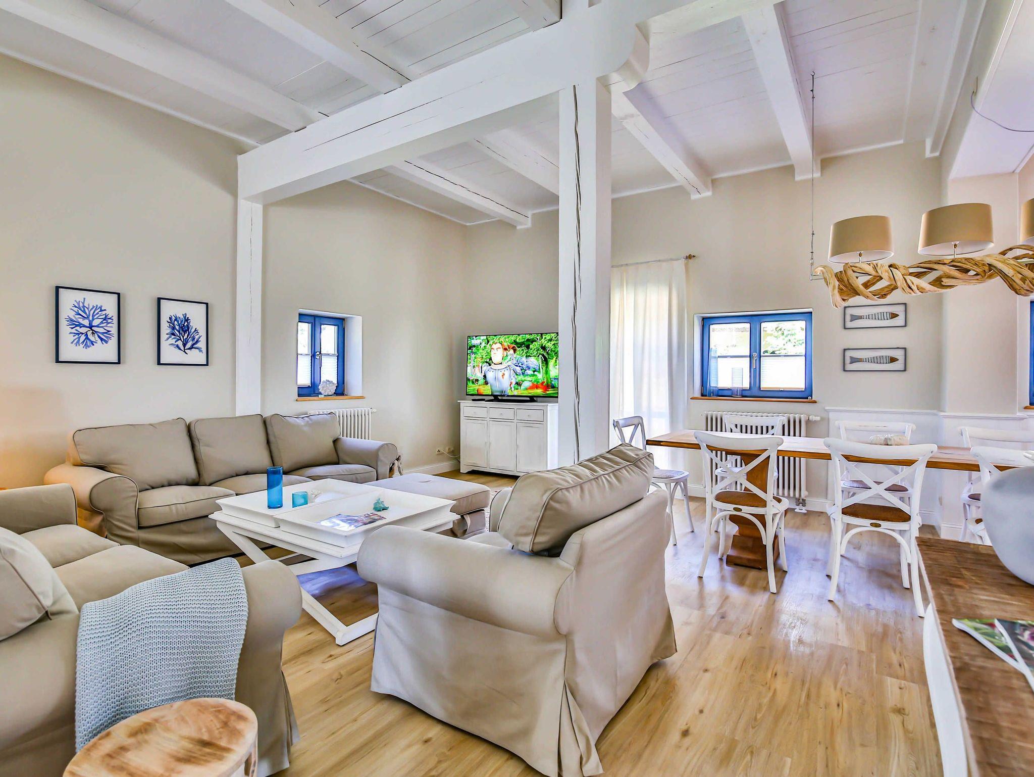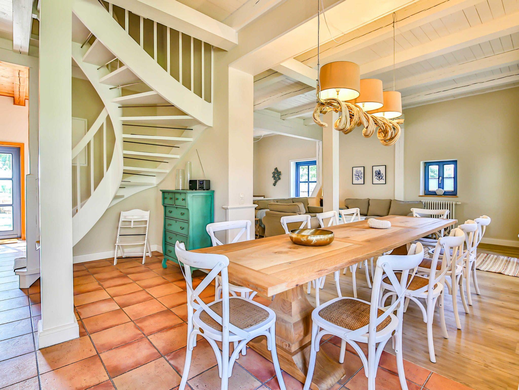 Das Ferienhaus Blaukehlchen im Sonnenhof ist ein 5-Sterne Ferienhaus mit viel Liebe zum Detail. Das Haus bietet 5 Schlafzimmer, wovon eines über einen barrierefreien Zugang mit separater Teeküche und Bad en Suite verfügt. Eine große voll ausgestattete Wohnküche, 3 Bäder und eine große Sonnenterrasse im anliegenden Garten. Das Haus befindet sich umgeben von Natur und direkt am Achterwasser. Zu empfehlen für Urlaub mit der Familie oder Freunden mit bis zu 10 Personen.