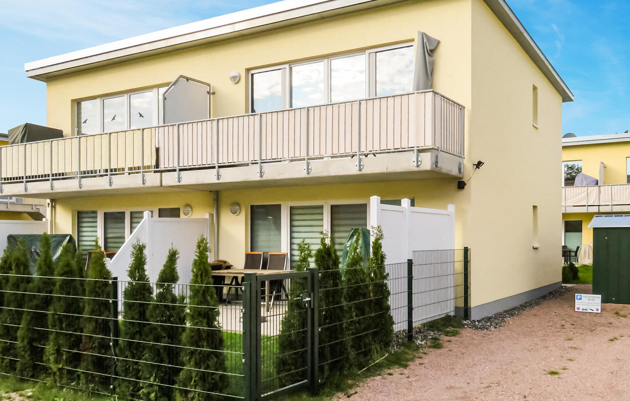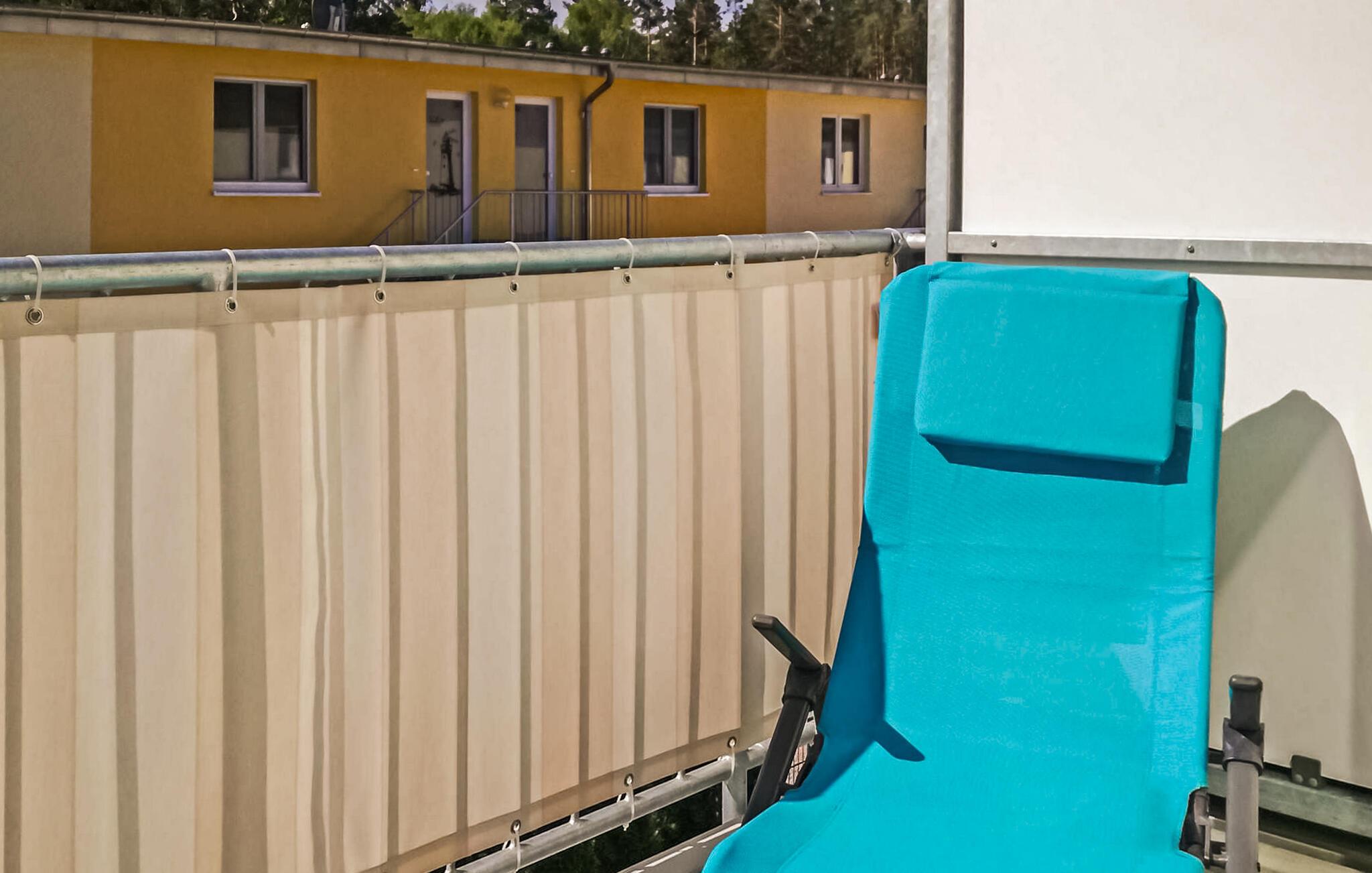 Den 43 kvm store 2-værelses ferielejlighed til maks. 4 personer ligger separat på øverste etage af et feriehus (4-WE) i et feriekompleks i kystskoven ved Østersøferiestedet Graal-Müritz. Østersøstranden ligger kun omkring 1,8 km væk. Feriehuset er nybygget i 2018 og lejligheden var hyggeligt indrettet. Adgang sker via en separat udvendig trappe. Der er opholdsstue (polstrede møbler med sovefunktion, fladskærms-tv, radio), åbent tekøkken (spiseplads, el-komfur med ovn og mikroovn funktion, køleskab med fryser, opvaskemaskine, diverse køkkenmaskiner), soveværelse ( dobbeltseng) og et badeværelse med bruser/toilet. Der er møbleret altan, grillfaciliteter (elgrill), opbevaringsplads til medbragte cykler og parkeringsplads. To cykler kan også benyttes gratis. En barneseng og høj stol kan stilles til rådighed for små børn. Den samlede pris inkluderer slutrengøring samt vand- og energiforbrug. Internet (W-LAN) er også tilgængeligt. Du kan medbringe dit eget sengelinned og håndklæder eller leje dem på stedet. Hvis du medbringer dit eget sengetøj, bedes du være opmærksom på den fuldflade topmadras (180x200). Østersøferiestedet Graal-Müritz er underlagt en turistskat. Østersø-kurbadet Graal-Müritz ligger mellem hansestaden Rostock (ca. 15 km væk) og den lille by Ribnitz-Damgarten ved foden af halvøen Fischland-Darß-Zingst. Omgivet af skovene på Rostock Heath, et 11.000 hektar beskyttet landskabsområde, strækker Graal-Müritz sig over en længde på 5 kilometer direkte ud til Østersøen.En særlig attraktion for gæster og lokale på ethvert tidspunkt af året er rhododendronparken, som strækker sig 350 meter ind i Østersøen Seebrücke og sports- og wellness-oasen Aquadrom, som åbnede i 2004. Pier Festival finder traditionelt sted i juli hvert år. Den 5 kilometer lange fine sandstrand er op til 40 meter bred. Badevandet har i mange år været af fremragende kvalitet Feriekomplekset "Küstenwald" ligger ca. 1 km fra Graal-Müritz. Boligparken ligger ifølge sit navn i et stort skovområde, som byder på talrige muligheder for aktiv rekreation.
