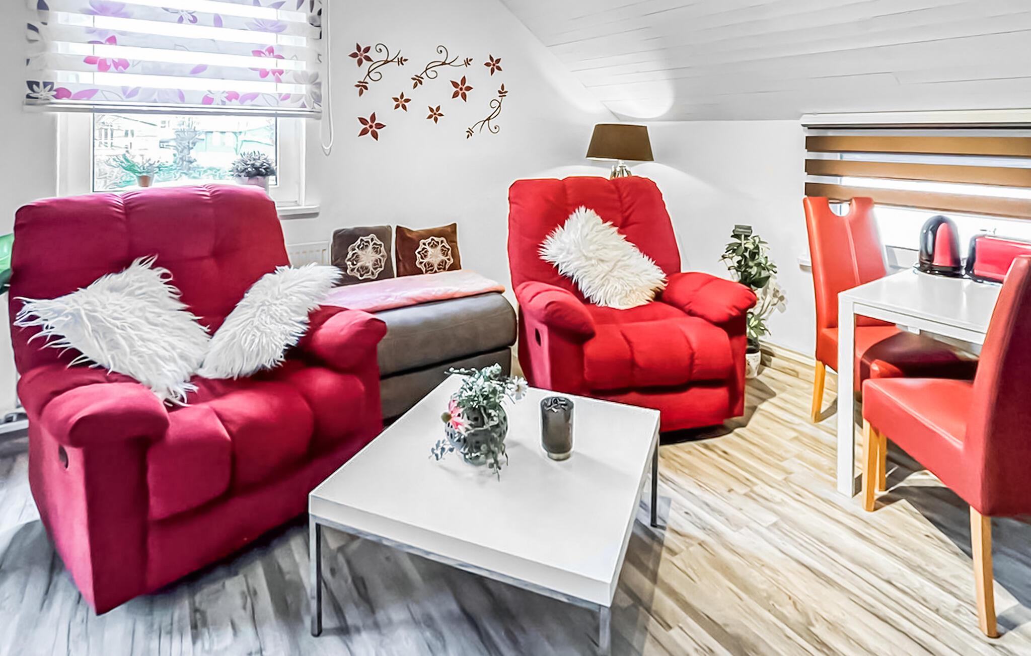 Den ene af to 45 kvm to-værelses ferielejligheder til 2 personer er beliggende på øverste etage i en beboelsesejendom på ejerens 500 kvm velholdte boligejendom med central beliggenhed kun ca 800 m fra Østersøstranden . Adgang sker via en stejl trappe i det separate indgangsparti. Ferielejligheden har en stue (2 superkomfortable hvilestole, stort fladskærms-tv, radio/CD, spisebord), et åbent køkkenområde (elektrisk kogeplade, køleskab med fryser, diverse køkkenmaskiner), et soveværelse (dobbeltseng) , gæsteseng), et badeværelse med bruser/toilet. En rejseseng og høj stol kan stilles til rådighed for små børn. Lejligheden har også balkon med siddepladser og liggestol. Der er et opbevaringsområde udenfor til lejede eller medbragte cykler. Der er en parkeringsplads på ejendommen. Der er yderligere offentlige parkeringspladser foran huset (gratis). Den samlede pris inkluderer slutrengøring samt vand- og energiforbrug. Internet (W-LAN) er også tilgængeligt. Du kan medbringe dit eget sengelinned og håndklæder eller leje dem på stedet. Østersøferiestedet Graal-Müritz er underlagt en turistskat. Østersø-kurbadet Graal-Müritz ligger mellem hansestaden Rostock (ca. 15 km væk) og den lille by Ribnitz-Damgarten ved foden af halvøen Fischland-Darß-Zingst. Omgivet af skovene på Rostock Heath, et 11.000 hektar stort landskabsbeskyttelsesområde, strækker Graal-Müritz sig over en længde på 5 kilometer direkte ved Østersøen.En særlig attraktion for gæster og lokale på alle tider af året er rhododendronparken, som strækker sig 350 meter ind i Østersøen Seebrücke og sports- og wellnessoasen Aquadrom, som åbnede i 2004. Seebrückenfesten finder traditionelt sted i juli hvert år. Den 5 kilometer lange fine sandstrand er op til 40 meter bred. Badevandet har været af fremragende kvalitet i mange år.