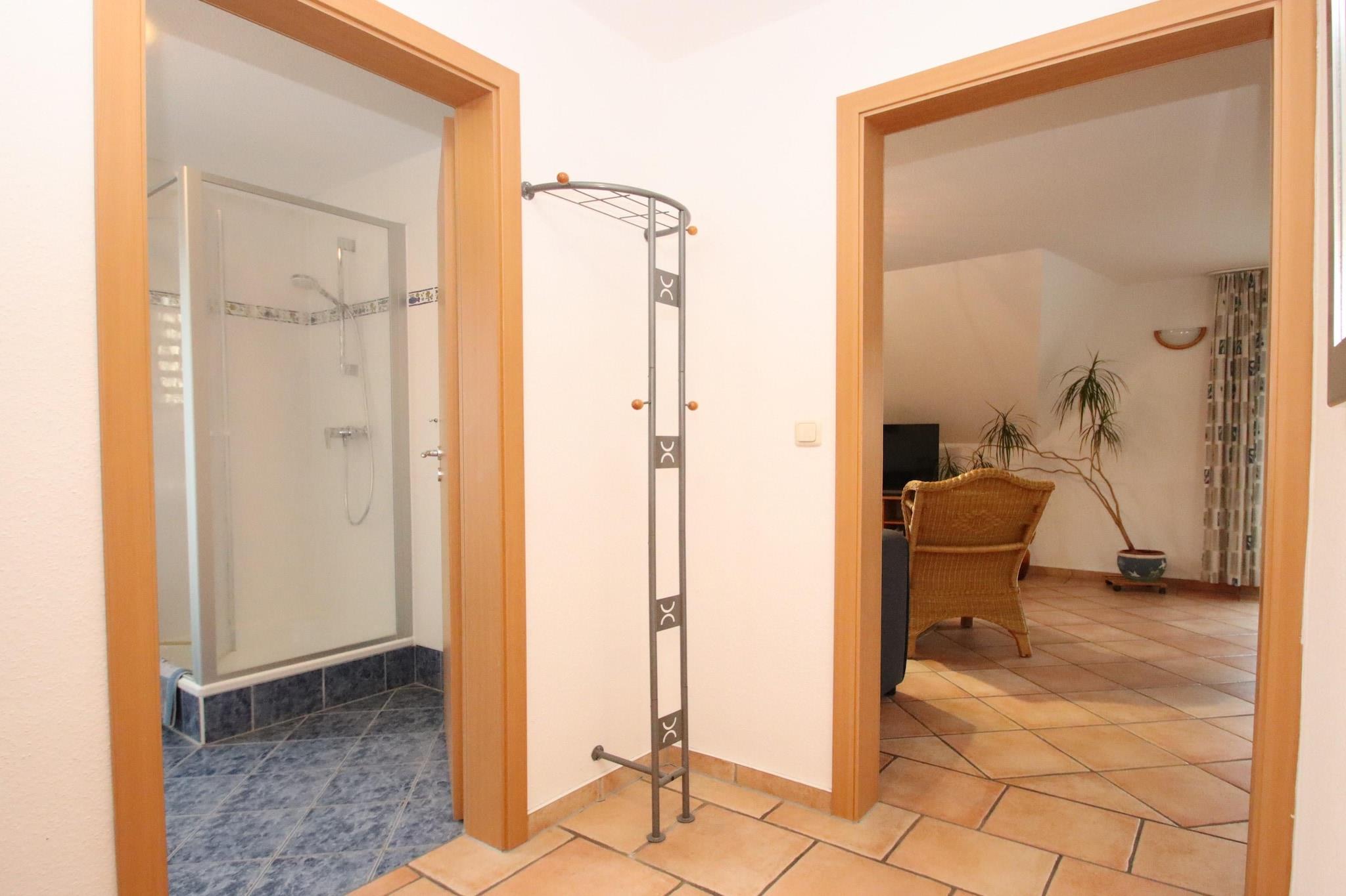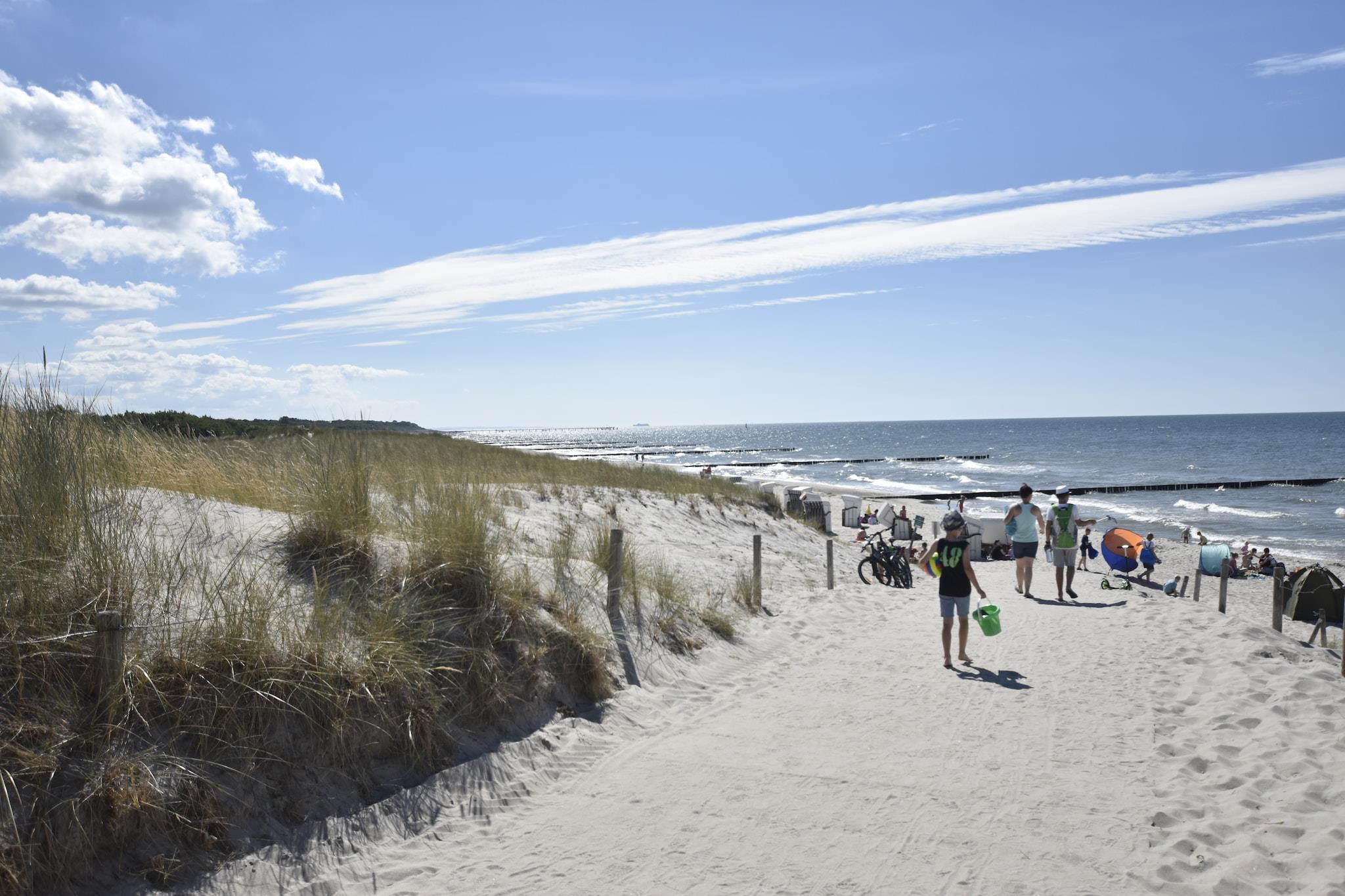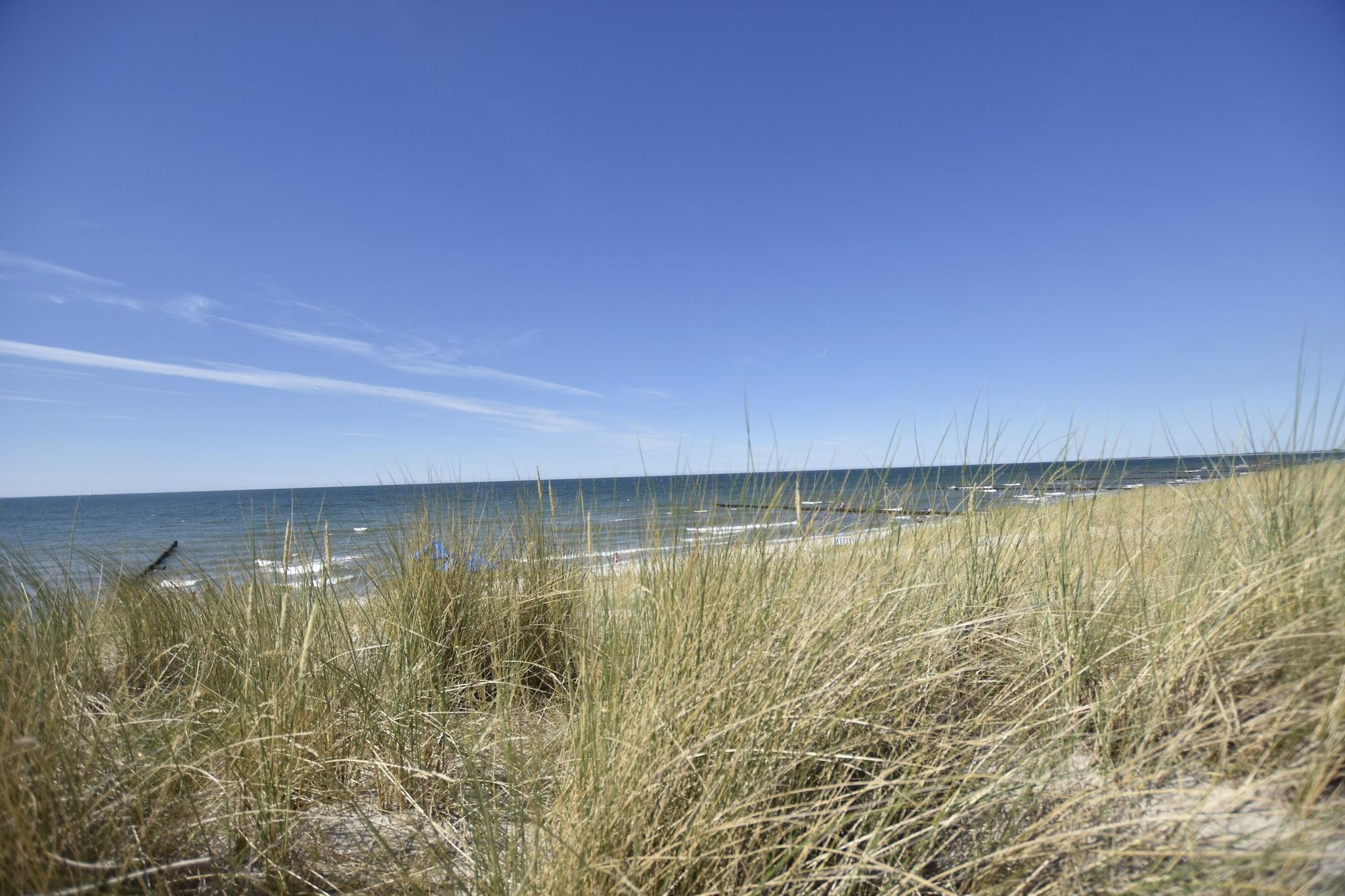 Denne komfortable 3-værelses ferielejlighed ligger i feriestedet Graal-Müritz ved Østersøen ved foden af halvøen Fischland-Darß-Zingst ved Østersøkysten. Den fine sandstrand ved Østersøen ligger kun fem minutters gang væk. Den sunde havluft og rene vand garanterer en afslappende ferie. Ferielejligheden strækker sig over to plan på øverste etage i et dobbelthus og kan rumme op til fem personer. Det har en stor stue med direkte udgang til altan med udsigt til haven, integreret køkken, soveværelse og badeværelse med bruser og toilet. En trappe fører til loftet, hvor der er et åbent soveværelse. Der er endnu en ferielejlighed i huset. Graal-Müritz er et charmerende feriested ved Østersøen med lange sandstrande, en mole og en idyllisk promenade. Restauranter, caféer og butikker ligger inden for gåafstand. Området byder på ideelle forhold for vandrere, cyklister og naturelskere, der ønsker at udforske det omfattende netværk af stier gennem skove, på tværs af enge og langs kysten.