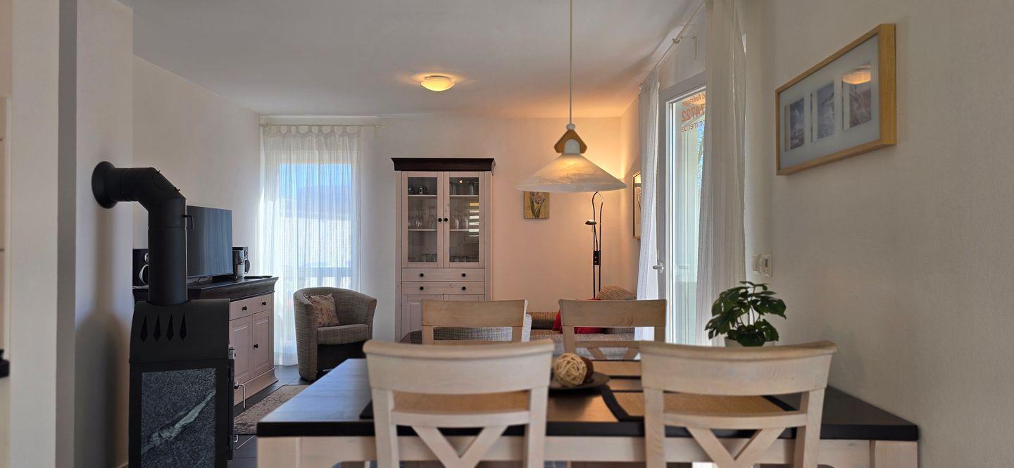 - Wohnbereich mit Kaminofen, Fußbodenheizung, Sitz- und Essecke, SAT-TV, CD- und DVD-Player