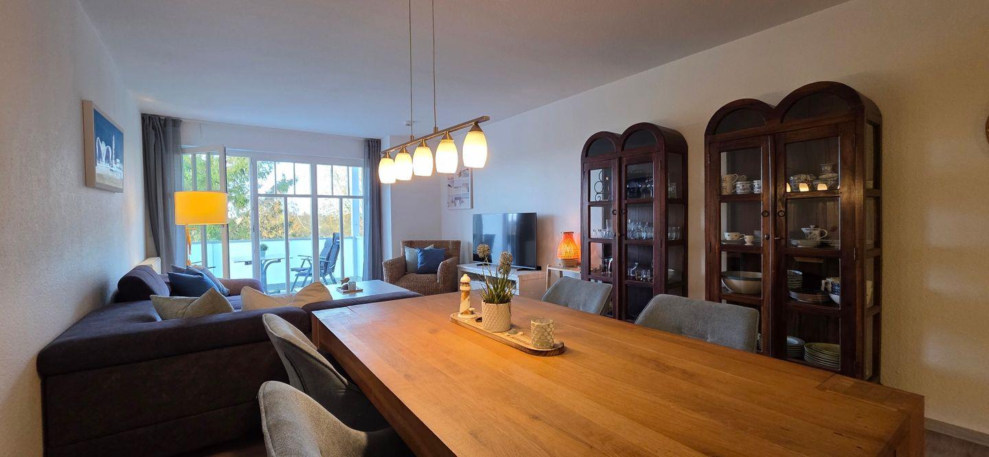 • Separater Essbereich mit großem Tisch und bequemen Stühlen
