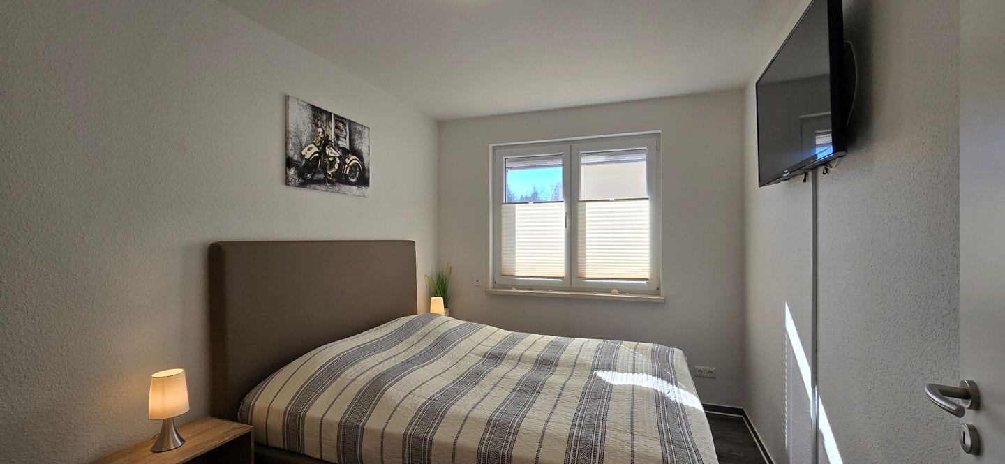 - ein Schlafzimmer mit Doppelbett für 2 Personen (160 cm x 200 cm) ein zweites TV Gerät ist vorhanden