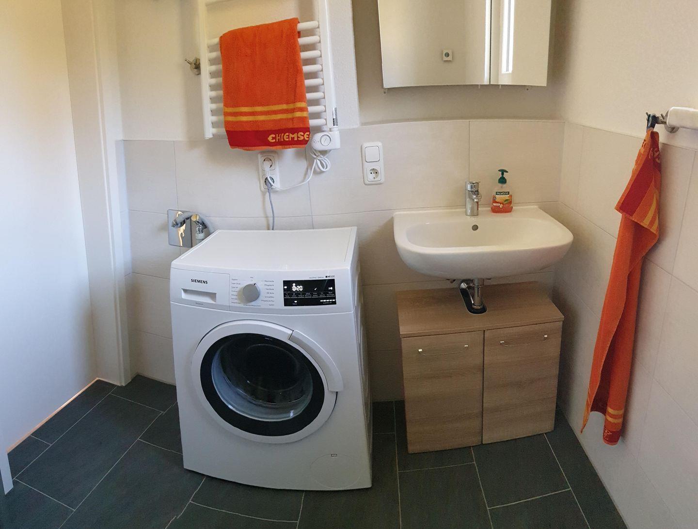 - Tageslichtbad mit ebenerdiger Dusche und WC, Waschmaschine, Handtuchheizkörper und Fön