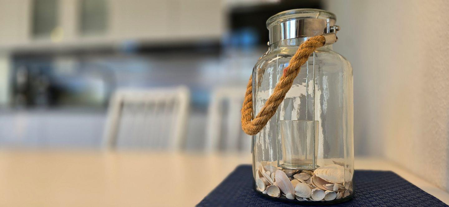 - offene Küche inkl. Herd, Backofen mit Heißluft und Mikrowelle, Geschirrspülmaschine, Kühlschrank mit Gefrierfach, Kaffeemaschine, Toaster, Wasserkocher