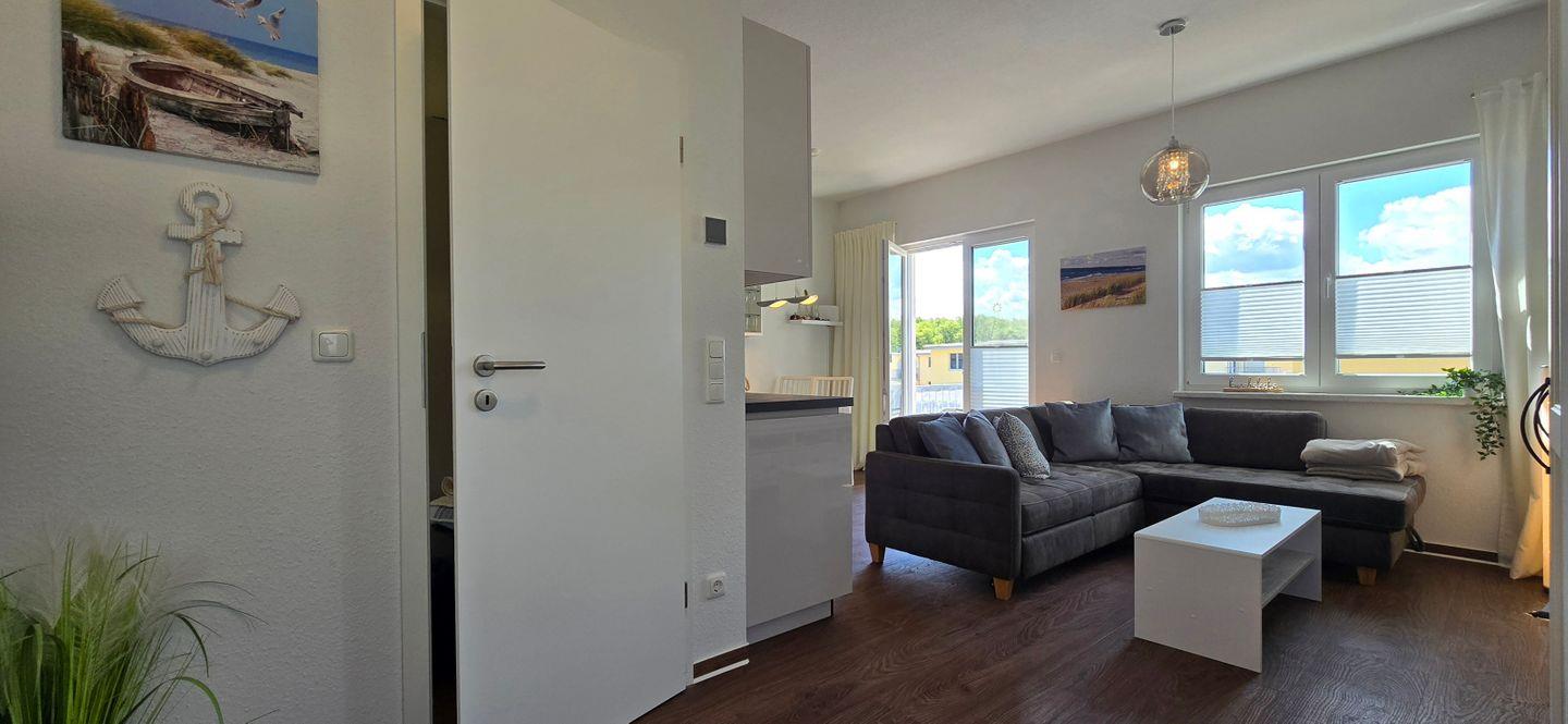 Die Ferienwohnung KWi 12 OG-"Sonnenschein" in Graal-Müritz bietet auf 42 m² ein Schlafzimmer, einen offenen Wohn- und Essbereich mit voll ausgestatteter Küche, Balkon, privatem Parkplatz und kostenfreiem WLAN. Mit Spülmaschine, Waschmaschine und Fußbodenheizung ist für hohen Komfort gesorgt. Kinder sind willkommen, Nichtraucher-Unterkunft.