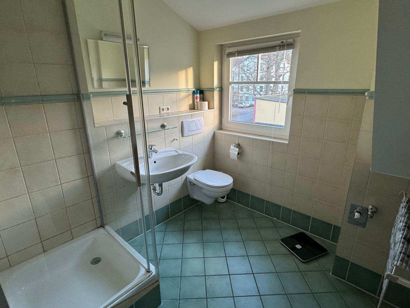 Ein Tageslichtbadezimmer bietet neben einer Dusche und WC, auch genügend Ablagefläche.