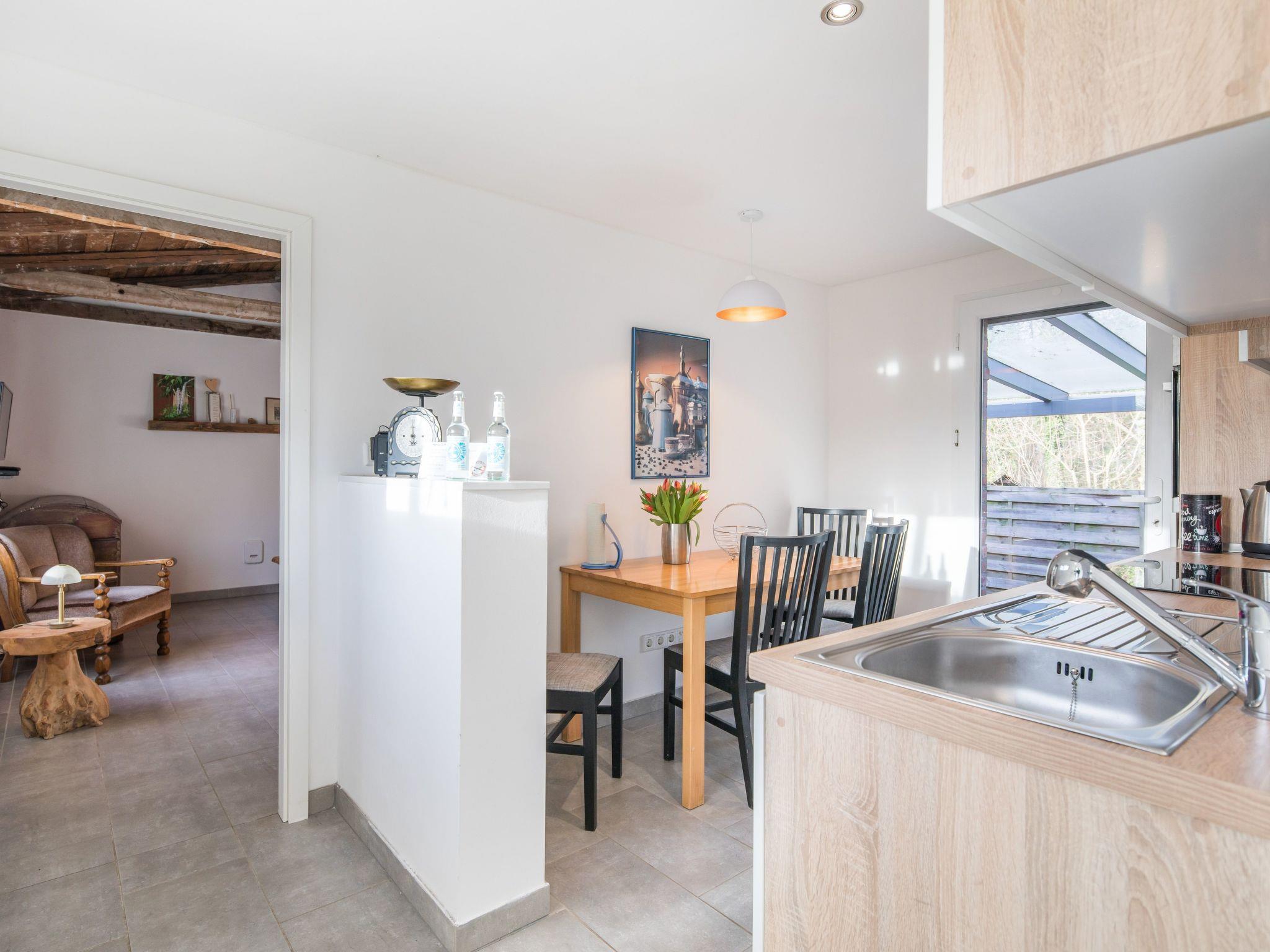 The outdoor area impresses with its own garden, which offers a sunny spot from morning to late afternoon. Fenced and partially screened, you can spend carefree hours here while your four-legged friend roams around safely. A terrace with garden furniture and barbecue, a high fenced rear garden and a practical canopy for dry storage of pushchairs or bicycles add to the charm of this inviting holiday home.