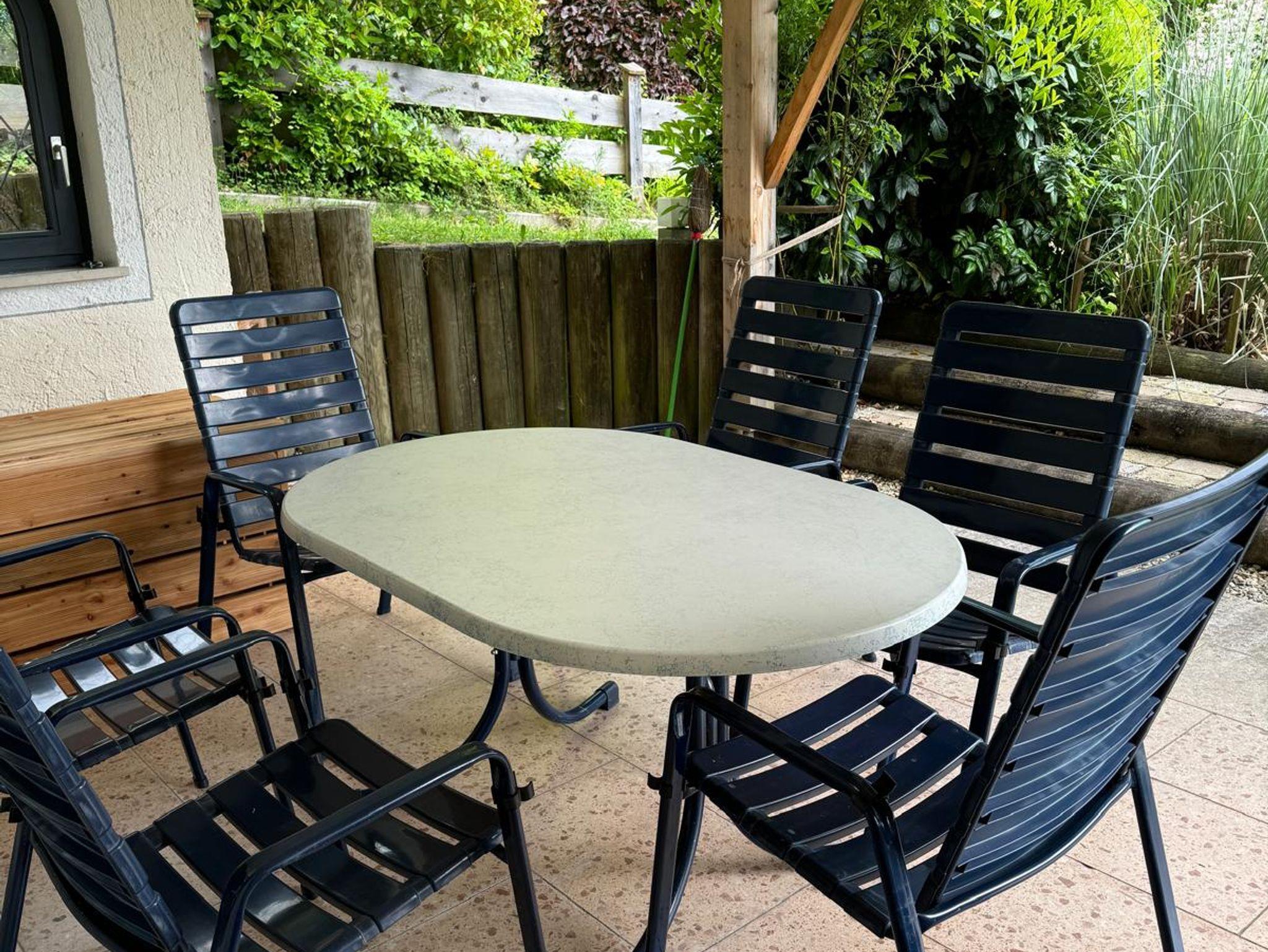 Im separaten Eingangsbereich befindet sich eine geräumigen Terrasse mit Sitzmöbeln und einem eigenen Grill.