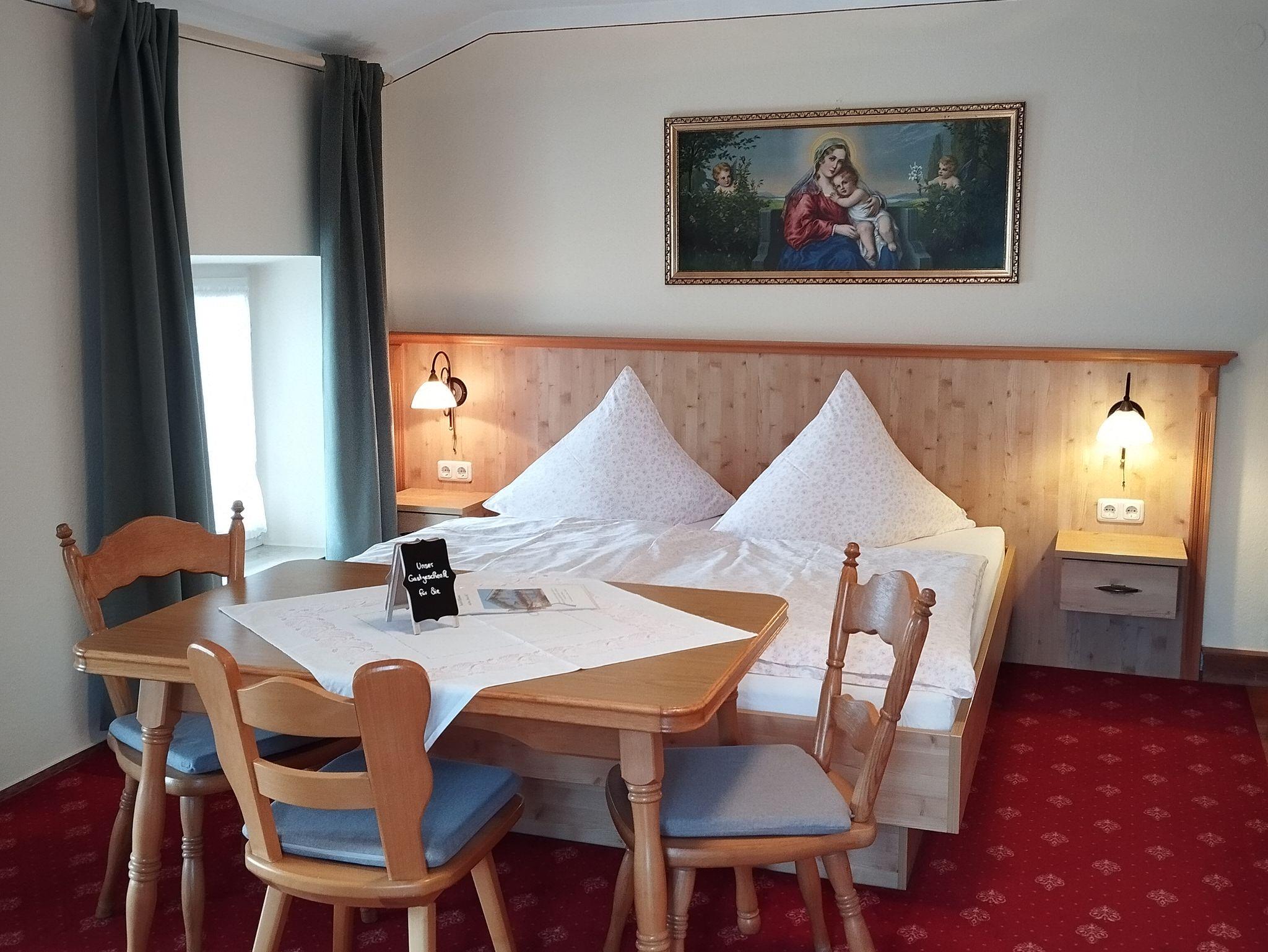 Gemütliches, helles, großes Gästezimmer mit Sitzecke und direktem Zugang zum Balkon, sowie Dusche und WC.