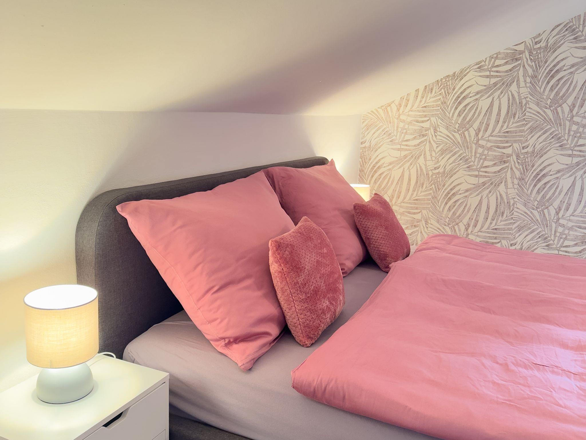 Doppelbett 180 cm x 200 cm, in diesen Raum kann bei Bedarf eine Schlafcouch aufgestellt werden mit den Maßen 120cm x190cm