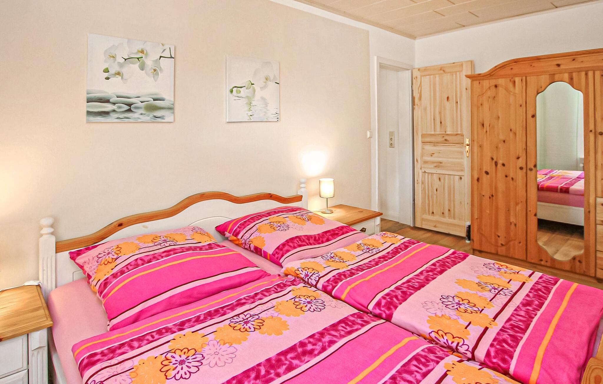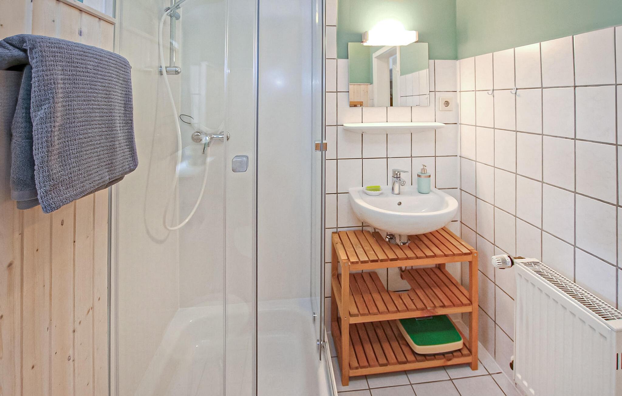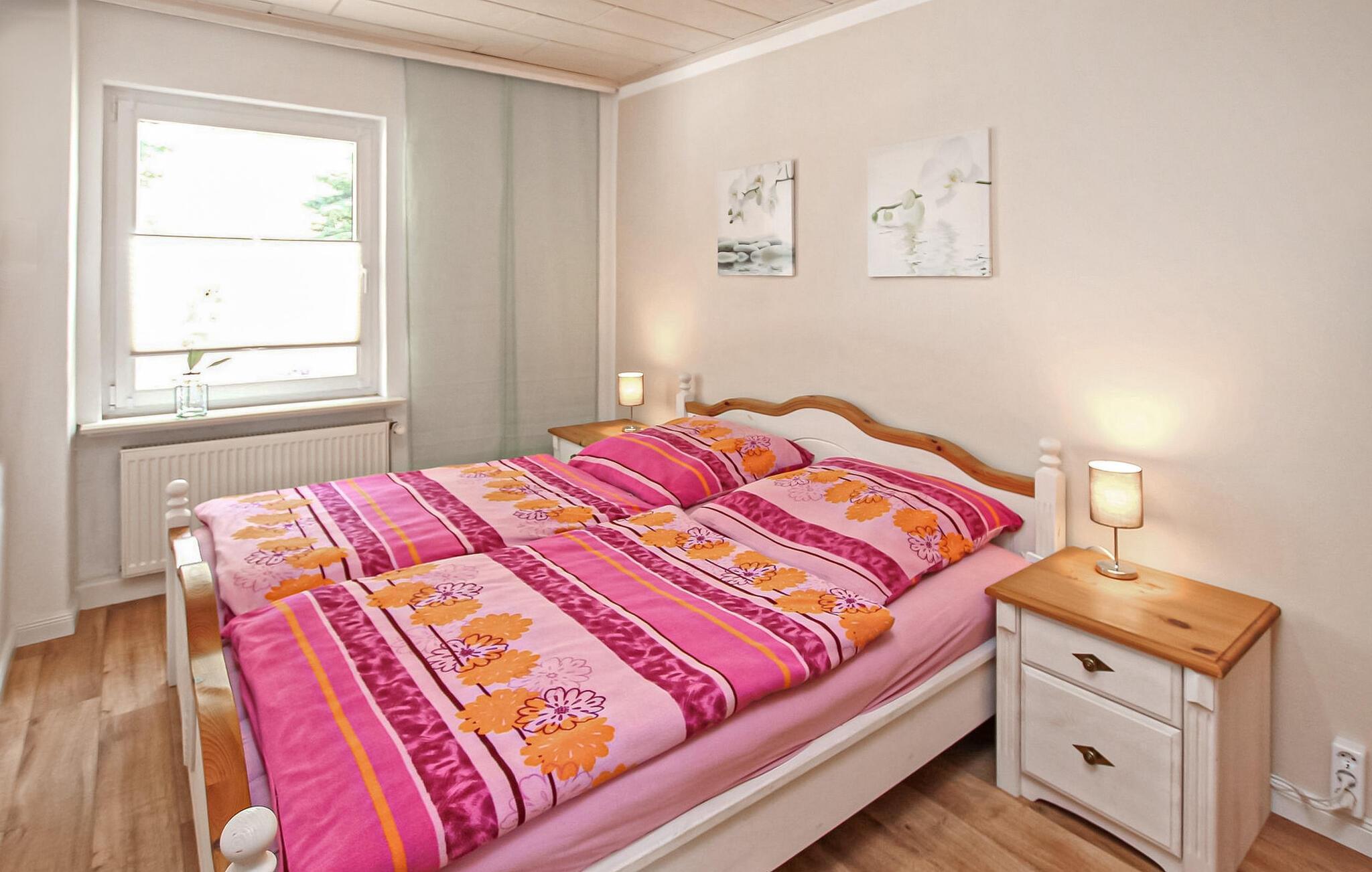 Direkte i byen og alligevel rolig beliggenhed ligger ferielejligheden for op til 3 voksne og 1 baby i et dobbelthus på en grund på ca 160 kvadratmeter, som i 2022 blev udvidet og totalrenoveret. Et smukt badeområde ved Flachsee ligger cirka 2 km væk, det nærmeste supermarked i Waren (Müritz) ligger 12 km væk. Den cirka 55 kvadratmeter, smagfuldt indrettede, centralt opvarmede ikke-ryger lejlighed med separat indgang har en stue (polstrede møbler, fladskærms-tv, radio, pejs inklusive træ), et stort køkken med spiseplads (elkomfur med ovn , køleskab med fryser mulighed, opvaskemaskine, diverse små køkkenmaskiner), et soveværelse (dobbeltseng), et badeværelse (bruser, toilet, omskiftelig el-varme) og en lille entre. Endnu et soveværelse (1 enkeltseng) kan nås via trapper (INGEN BØRNESIKRING!) Der er også en møbleret, overdækket terrasse med grill, parkeringsplads, cykelkælder og efter aftale en båd (mod betaling). Den samlede pris inkluderer slutrengøring, sengetøj, el og vand. Medbring venligst håndklæder. Betales på stedet: Båd (hvis det ønskes) 20 EUR/dag. Kæledyr er ikke tilladt i denne ejendom. Sophienhof, et lille distrikt i Grabowhöfe kommune, ligger mellem flere søer i Mecklenburg Lake District og det skovklædte bakkelandskab i Mecklenburg Schweiz og er cirka 15 km fra den statsanerkendte kurby Waren (Müritz) - turisten. regionens centrum. Regionen er ideel til en afslappet og aktiv ferie. Den nærliggende Flachsee med badebro og badeområde kan nås på en idyllisk sti på cirka 10 minutter på cykel.Nærmeste supermarked ligger i Waren (Müritz), cirka 12 km væk. Her finder du adskillige andre indkøbsmuligheder, restauranter og caféer, den store offentlige pool på Müritz, båd- og cykeludlejning og vandsport. Attraktioner omfatter den historiske gamle bydel, havnen med passagerbåde og promenade, Müritzeum, et naturoplevelsescenter med et kæmpe ferskvandsakvarium og udstillinger om flora og fauna i sødistriktet, samt Müritz Nationalpark, som er fremragende tilgængelig via det veludbyggede netværk af cykelstier (også i kombination med passagerskib).