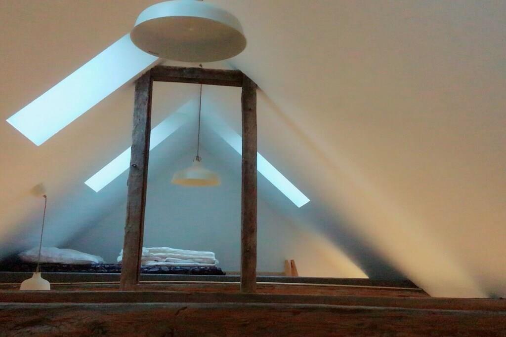 Ferielejligheden nås direkte fra den fælles entré, der fører op til den naturlige, ufærdige loftsdør. Gennem lejlighedens entrédør kommer man ind i det åbne køkken- og spiseområde. Bagtil er der en sofa, en enkeltseng og en dobbeltseng. En stige fører op til den åbne hems med ekstra sovemuligheder. En barneseng og højstol kan stilles til rådighed. Denne ferielejlighed supplerer vores anden lejlighed overfor, som er ideel til bedsteforældre eller familier, der rejser sammen. Bemærk venligst: Selvom der er flere sovemuligheder, kan vores spildevandsanlæg kun rumme maksimalt fire personer, inklusive børn. Hvis jeres selskab er større end fire, bedes I kontakte os på forhånd. Sommerstorf ligger kun ti minutters kørsel fra Waren an der Müritz og kun få minutter fra mange smukke søer i det dejlige Mecklenburg-landskab.