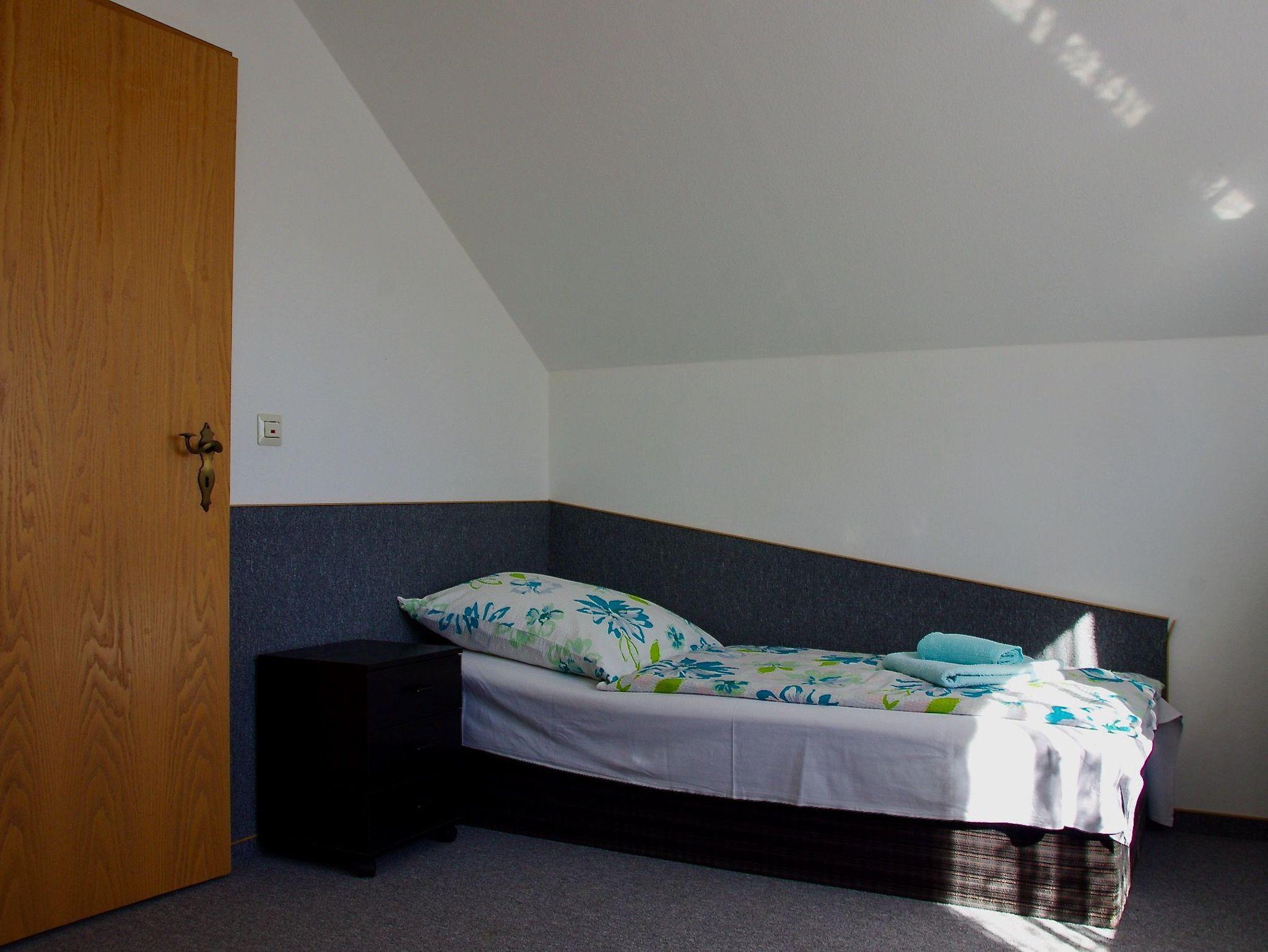 Über zwei Etagen bietet dieses familienfreundliche Ferienhaus alle Annehmlichkeiten für Ihren Urlaub mit Familie oder Freunden. Hier finden Sie einen gemütliches Wohnzimmer, eine Küche mit Essecke, das Bad und eine Terrasse im Erdgeschoss. Die Schlafzimmer mit Doppelbett, zwei Einzelbetten und Kinderbett sind im Dachgeschoss.