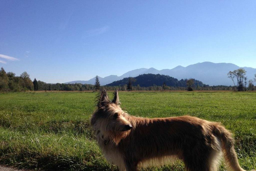 Beautiful, 5 year old log cabin with a large, completely fenced 1000m² garden (fence height 120 cm) and views of the Ester Mountains.