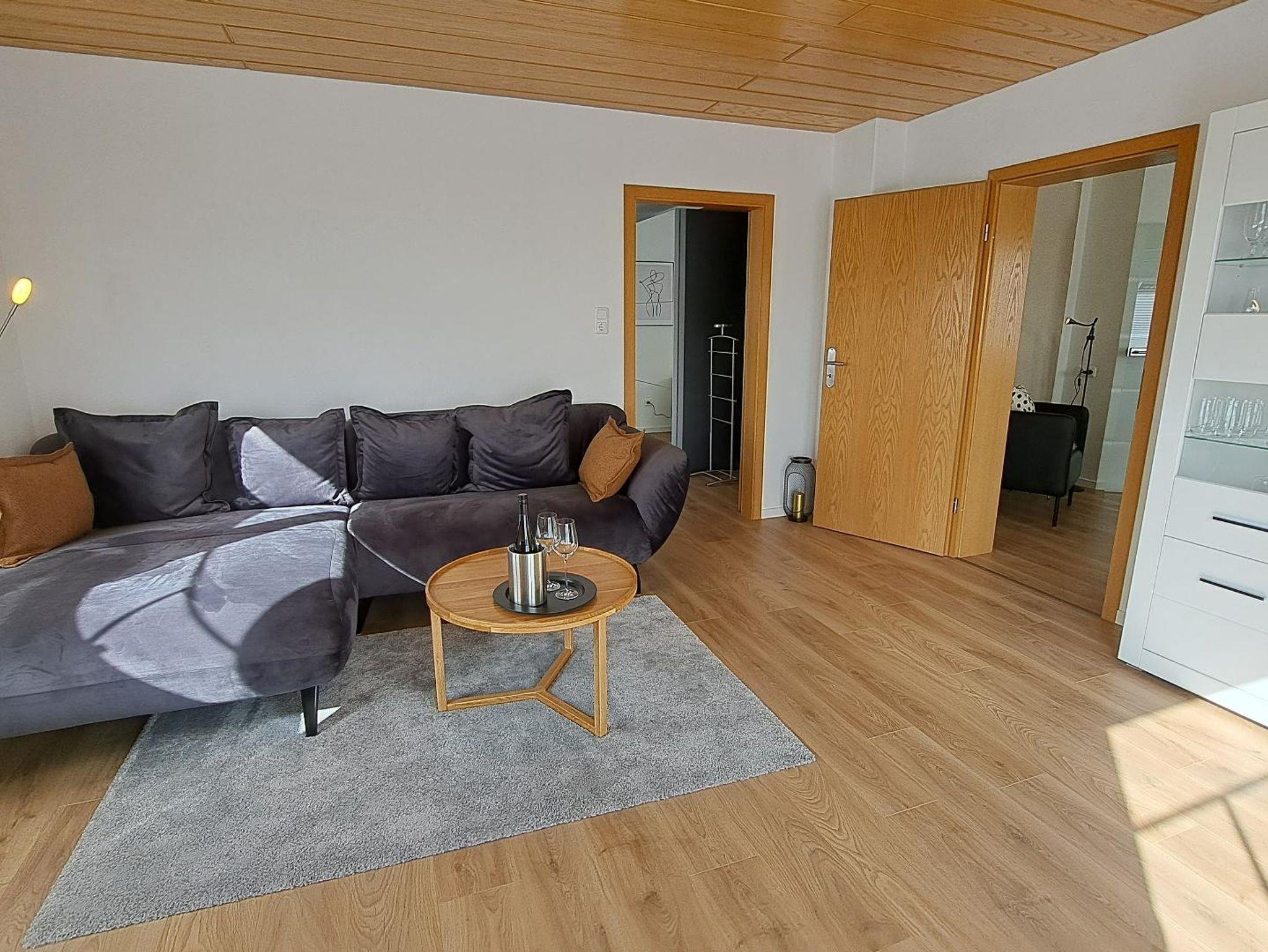 Die neurenovierte und komplett hochwertig neu ausgestattete 5 Sterne FEWO 2 im Erdgeschoss hat eine Wohnfläche von ca. 85m² mit einer zusätzlichen Terrasse von 14m² . Die Wohnung besteht aus Diele mit Garderobe und Ganzkörperspiegel. Die Küche mit Mittelinsel ist in gehobener Ausstattung sehr umfangreich: Wasserkocher, Kapsel-Kaffeemaschine, Toaster, Kühlschrank mit Gefrierfach, großes Ceran-Kochfeld mit Backofen, Mikrowelle, Geschirrspülmaschine, hochwertiges Geschirr für sechs Personen. Ein gemütlicher Essplatz für vier Personen. Ein Wohnzimmer mit 55 Fernseher, kostenloses WLAN, moderne Eck-Couch, ein Schreibtisch mit Leselampe ergänzt die Einrichtung. Das Schlafzimmer 1 ist mit einem großen Boxspringbett, Kleiderschrank mit Spiegeltür, Fernseher 43, und Frisiertisch ausgestattet.Das Schlafzimmer 2 ist mit einem Boxspringbett, Kleiderschrank und Schreibtisch eingerichtet. In der Wohnung befindet sich ein Bad mit Badewanne und extra Dusche, Waschtisch mit großem Spiegelschrank und Föhn. Das WC mit Handwaschbecken ist separat. Auf der großen Terrasse mit Zugang vom Wohnzimmer stehen Ihnen Gartenmöbel zur Verfügung.