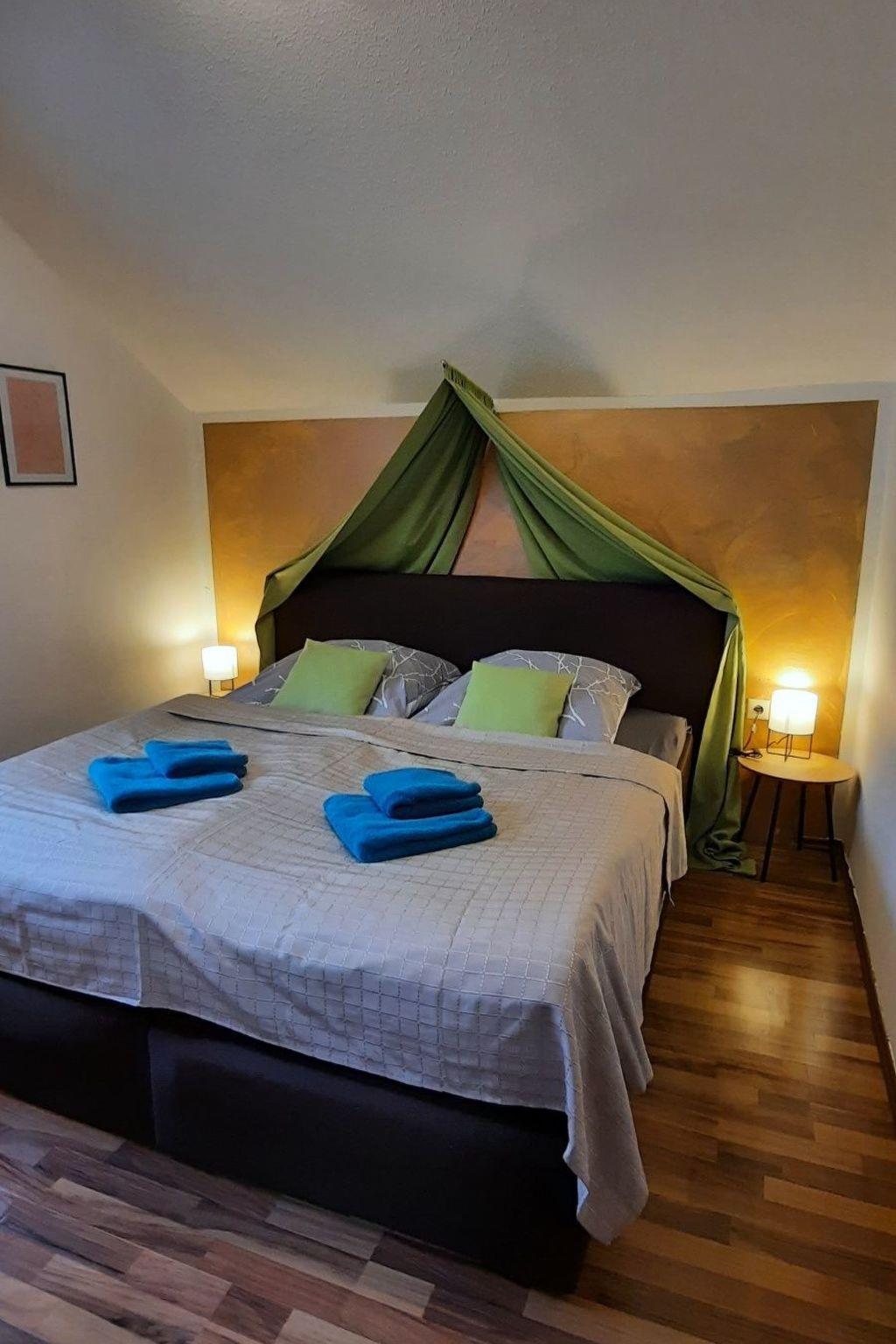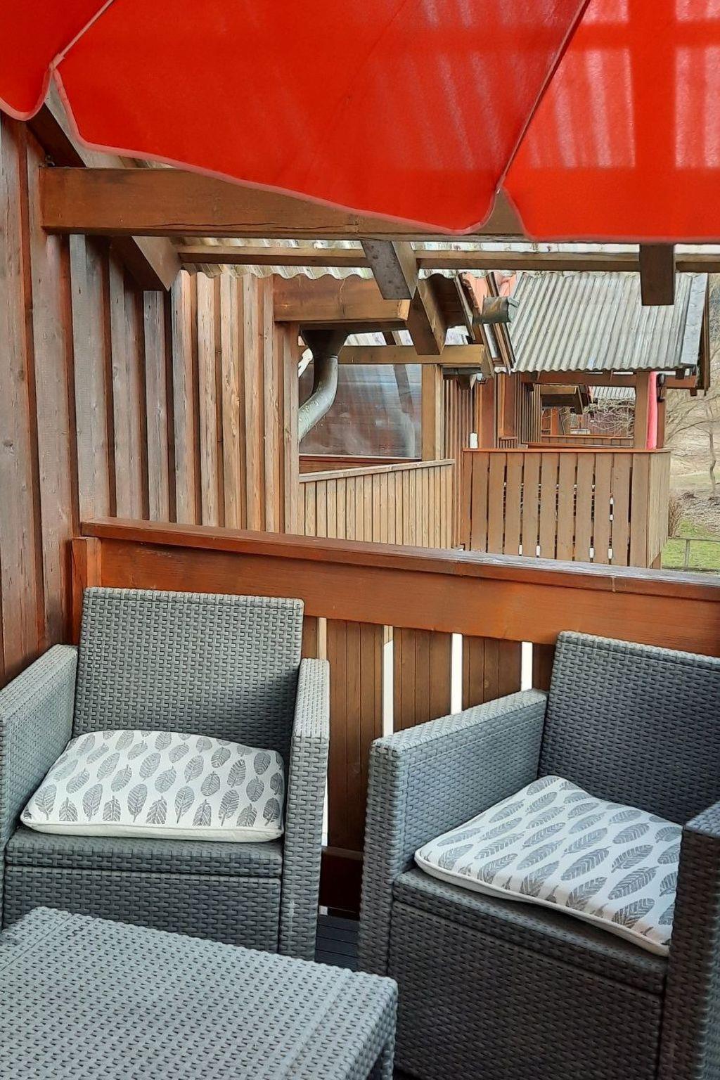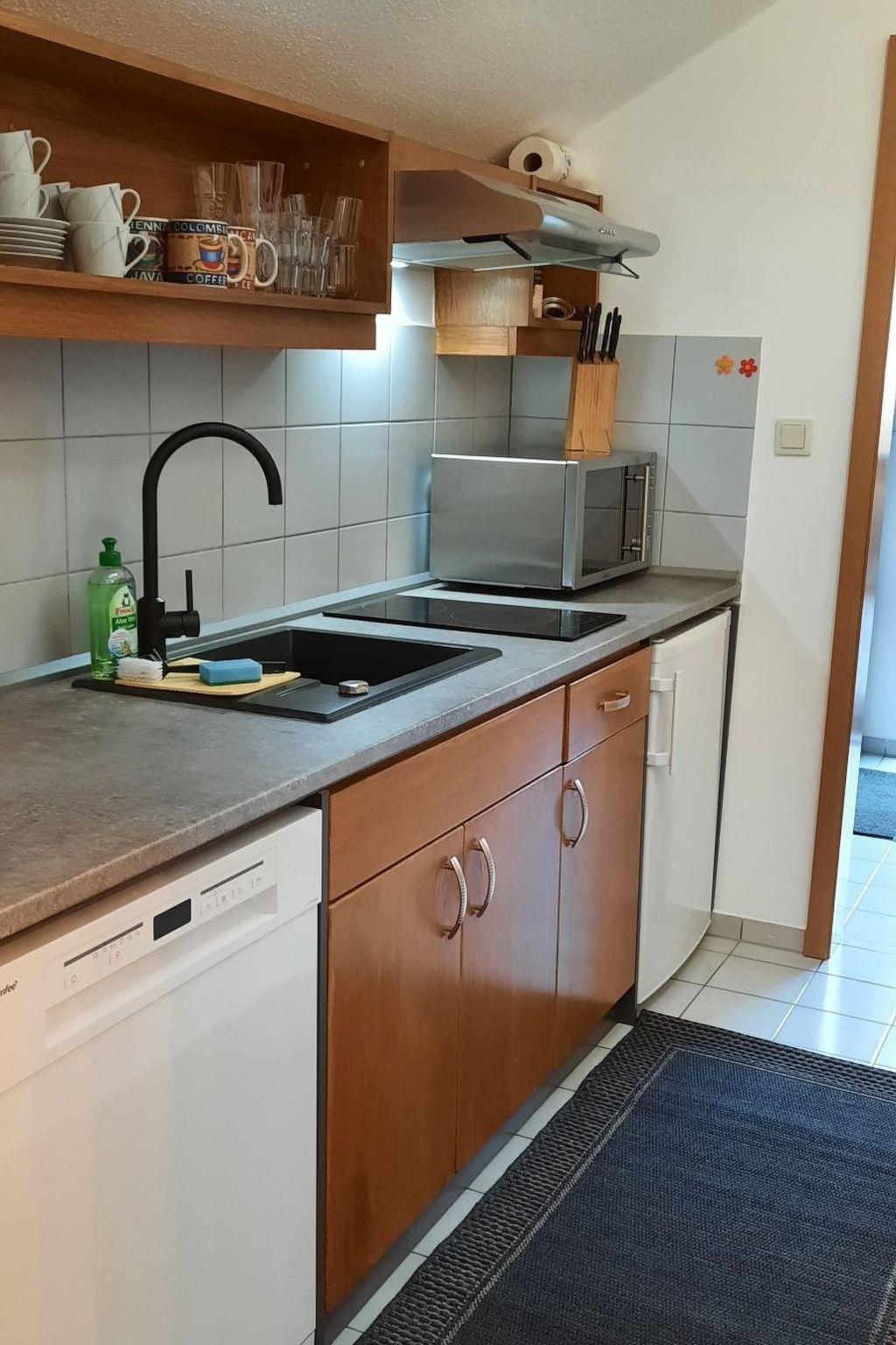 We only took over this flat at the beginning of 2022 and have completely renovated and modernised it. A cosy box-spring bed awaits our guests in the bedroom. The living room is furnished with a sofa bed, cosy round dining area, reading corner and satellite TV. There is also a Wii games console, Bluray/DVD player and a DAB+ radio with Bluetooth. The bathroom with bathtub is bright and friendly. The kitchen is equipped with a ceramic hob, microwave with grill and hot air, dishwasher, Senseo coffee machine, kettle, toaster and all cooking utensils. The sunny balcony overlooks a small stream and a biotope in the countryside. A high-quality electric barbecue is available for barbecuing.