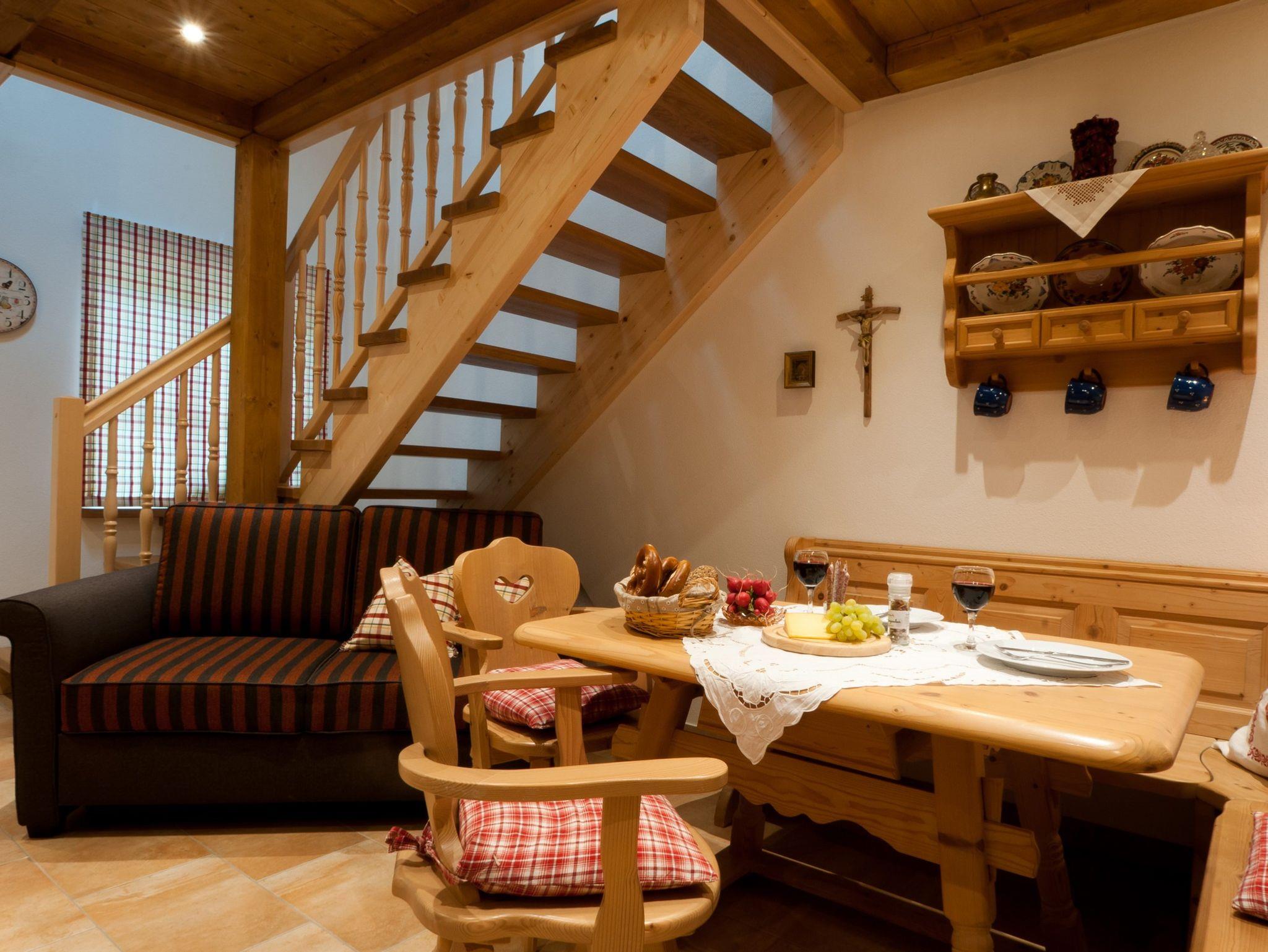 Ferienwohnung für 2 Personen, 1 Schlafzimmer mit Doppelbett, Zustellbett und/oder Kinderbett in Galerie möglich, Küche komplett eingerichtet mit Geschirrspüler, Kaffeepadmaschine, Wasserkocher, Backofen, Kochfeld, gemütliche Essecke, ausziehbare Couch, Bad mit Dusche/WC, Balkon mit Bergblick zum Breitenberg (Südseite) Stereoanlage, TV mit SAT-Anschluss, 1. und 2. Stockwerk mit gemütlicher Galerie.Haustier auf Anfrage !