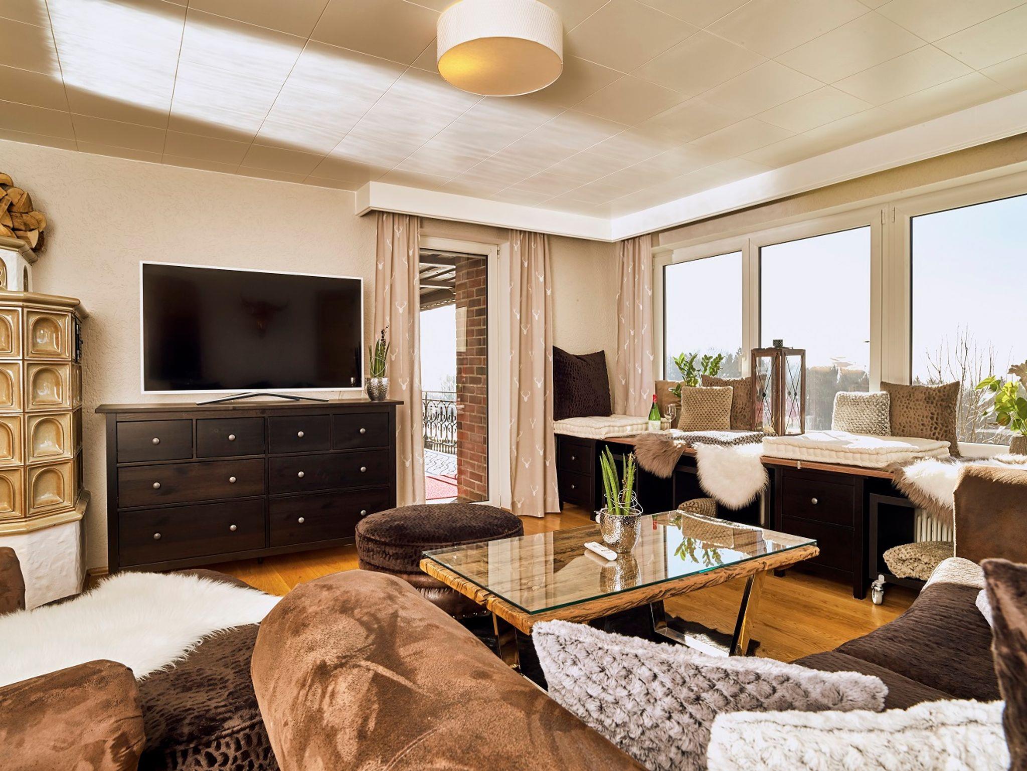Küche mit Essbar, Esszimmer, das moderne Wohnzimmer mit Kachelofen lassen Ihren Aufenthalt richtig gemütlich werden.