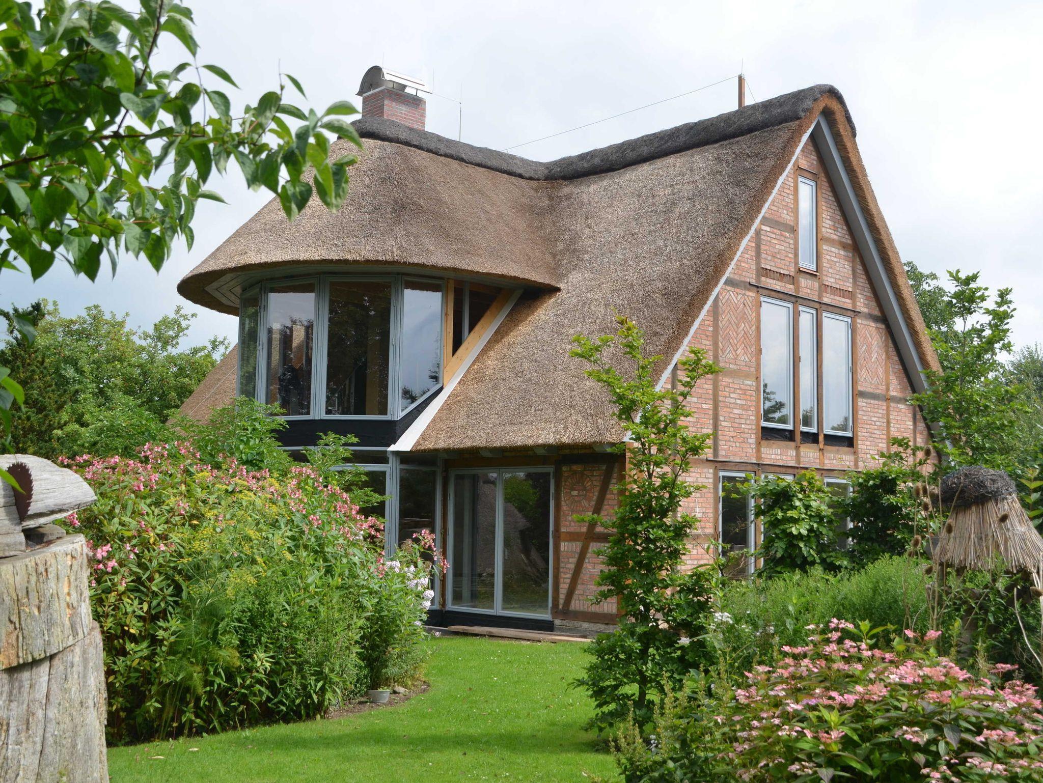 Das reetgedeckte Espenhaus des ErlebnisReich Gestüt Schierensee liegt traumhaft unmittelbar am privaten Gewässer. Das liebevoll mit historischen Baumaterialien 2016 neu erstellte Kleinod ist mit hochwertigem Komfort ausgestattet: