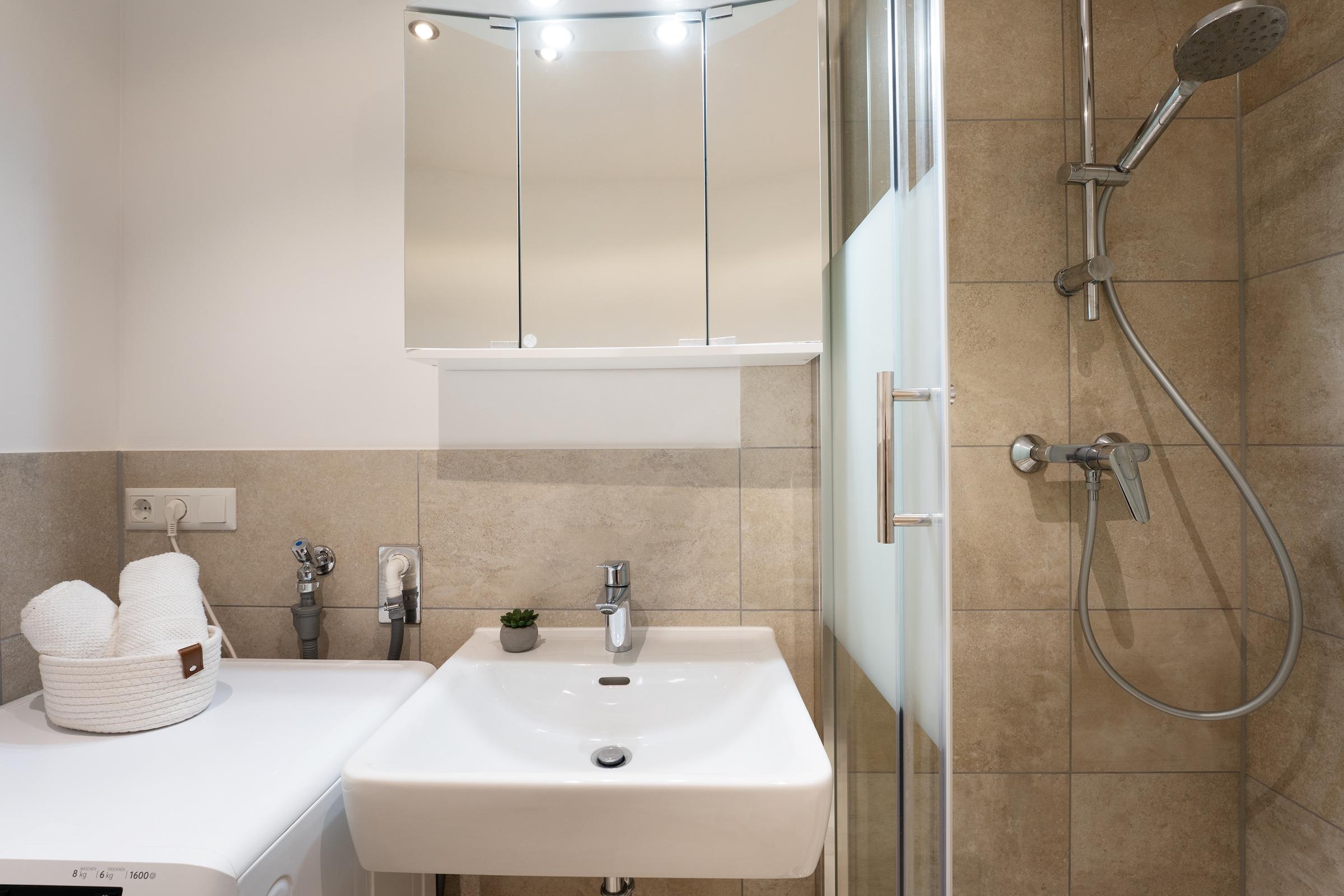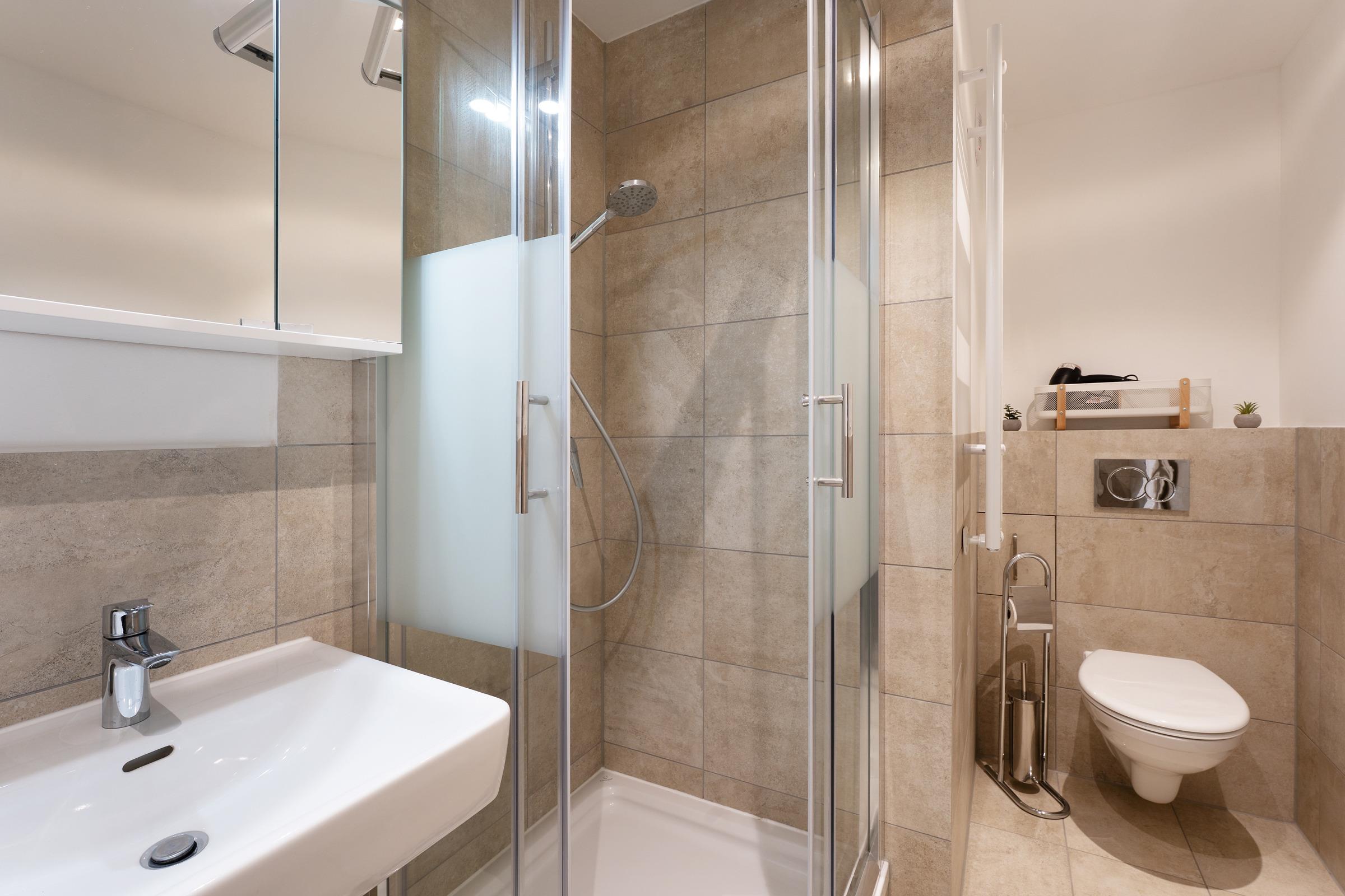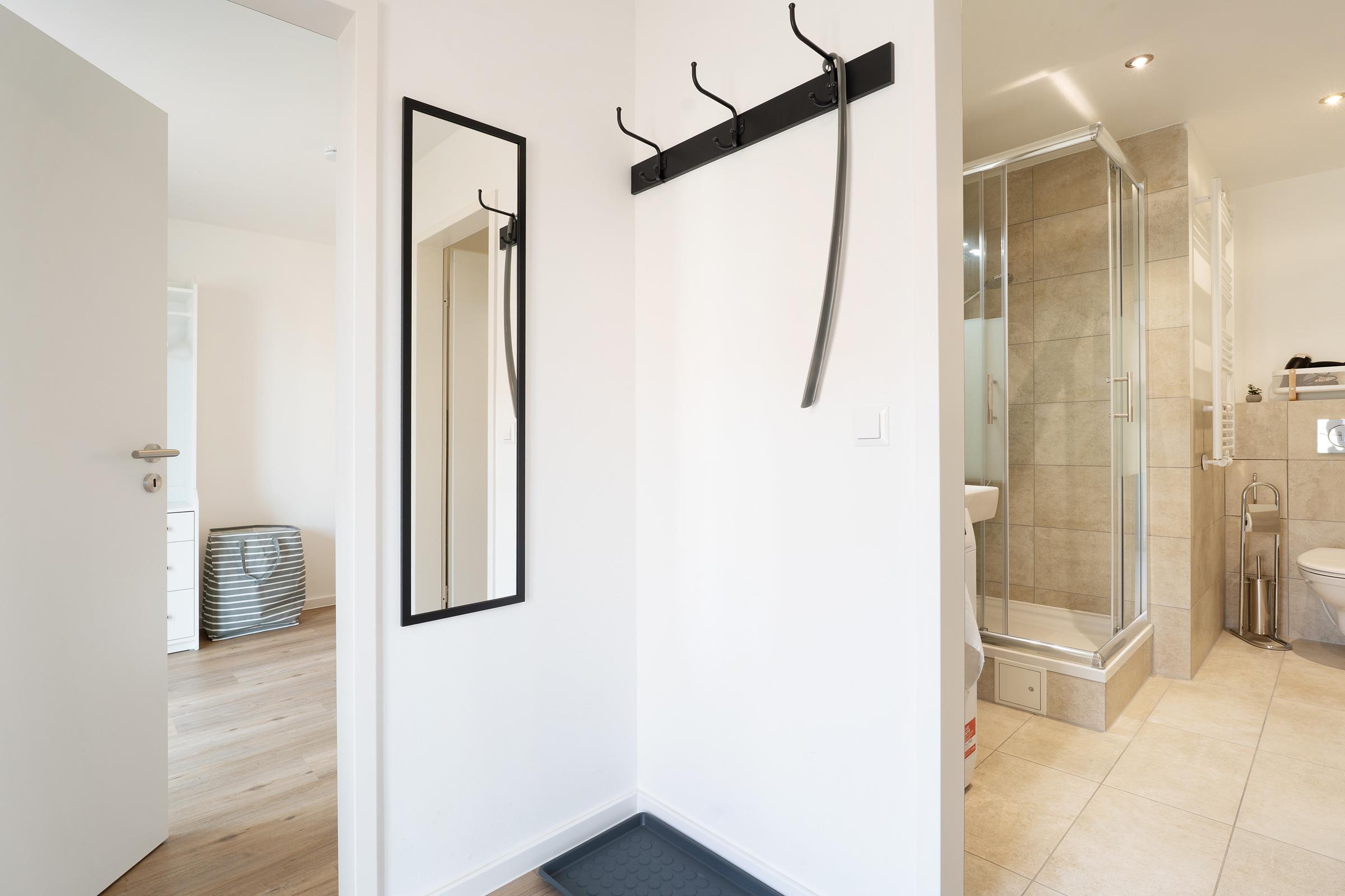 Im Schlafzimmer erwarten Sie komfortable Schlafmöglichkeiten für bis zu 4 Personen. Das Badezimmer überzeugt mit einer Dusche und praktischen Details wie einem beheizbaren Handtuchhalter sowie einem Haartrockner.