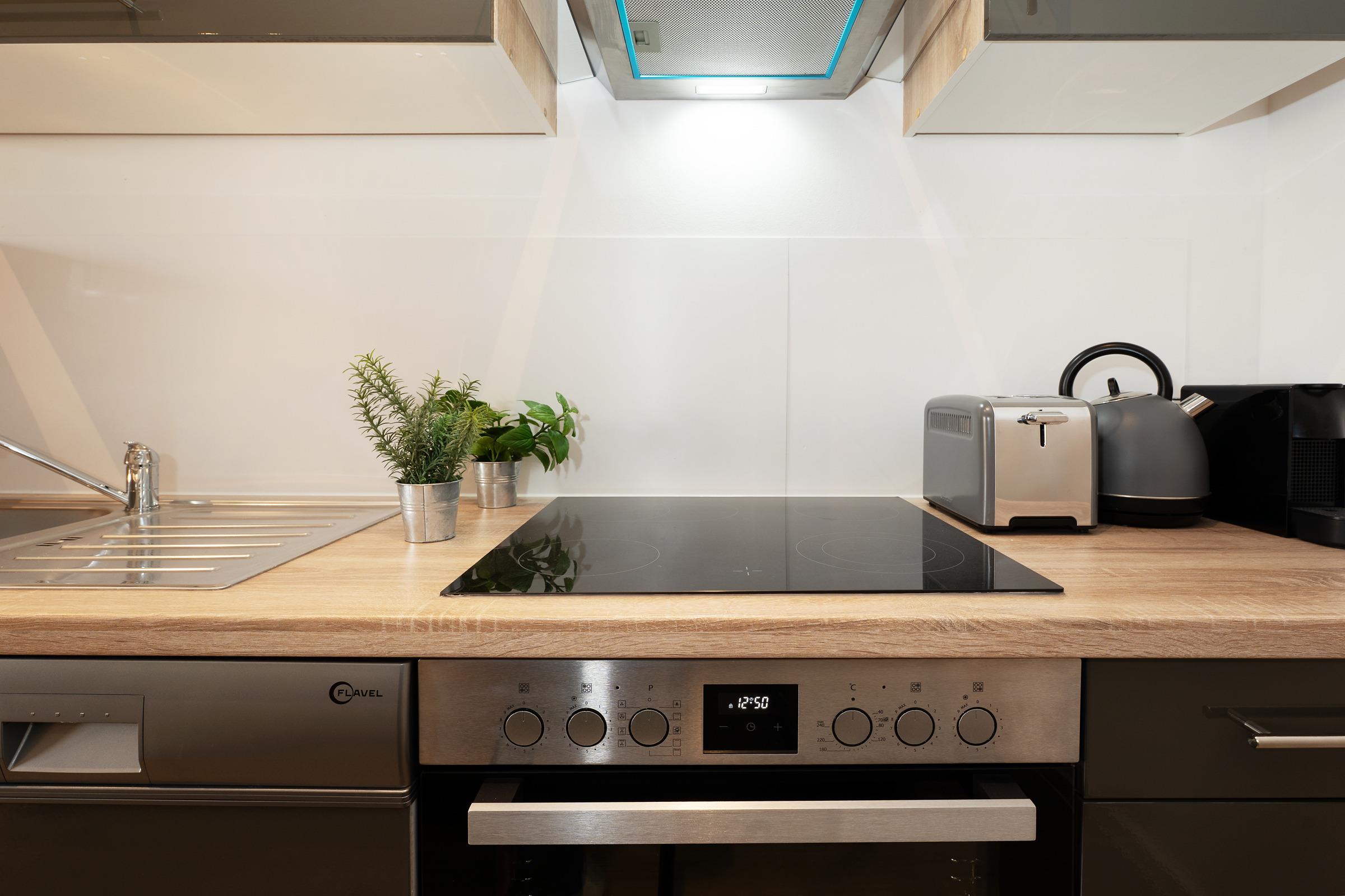 Die offene Küche, angrenzend an den Essbereich ist perfekt für Hobbyköche ausgestattet. Sie finden hier ein Ceranfeld, einen Backofen, einen Kühlschrank mit Gefrierfach, eine Nespressomaschine und weitere Annehmlichkeiten, die Ihren Aufenthalt und die damit verbundene Erholung ideal abrunden.