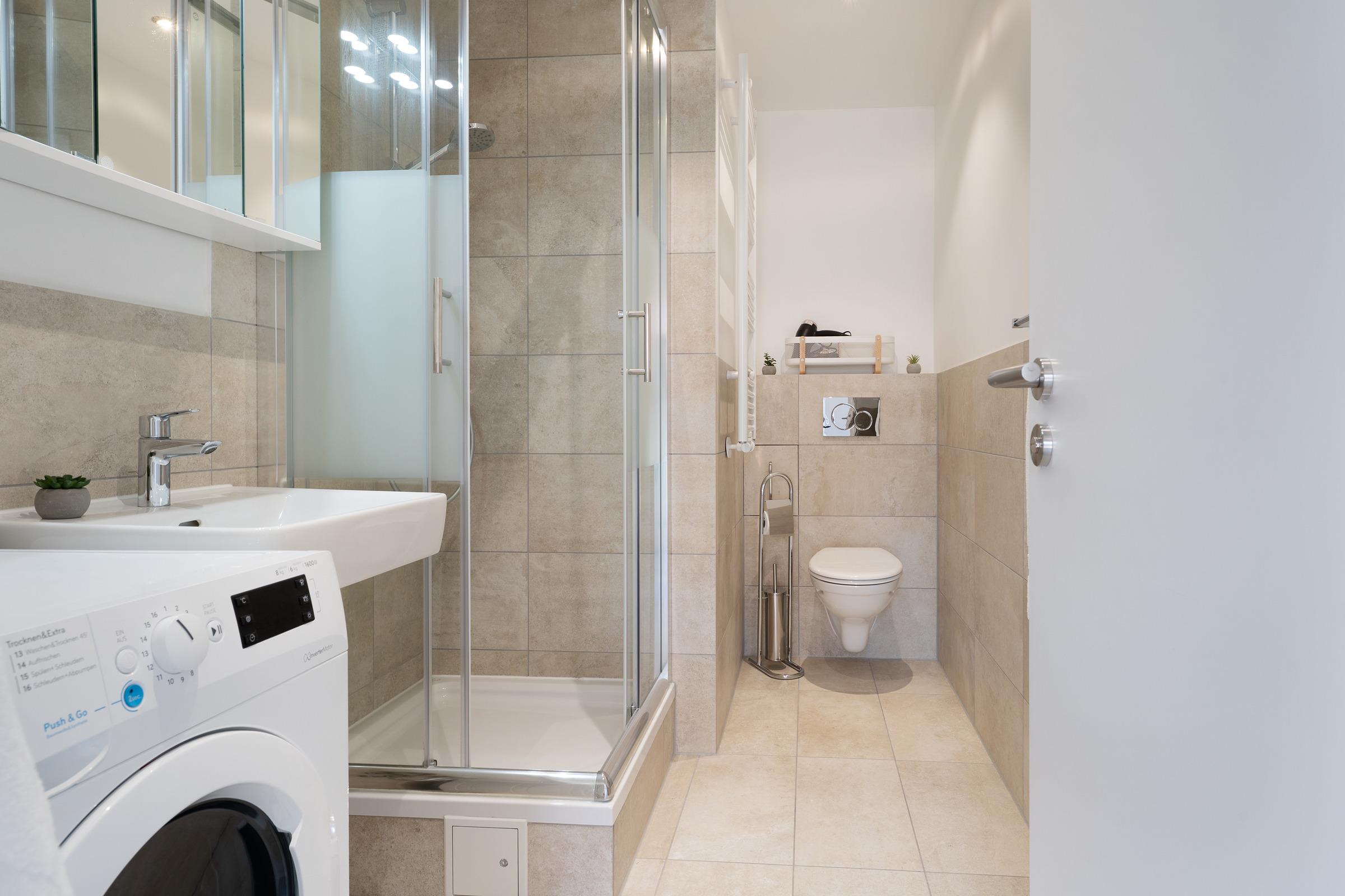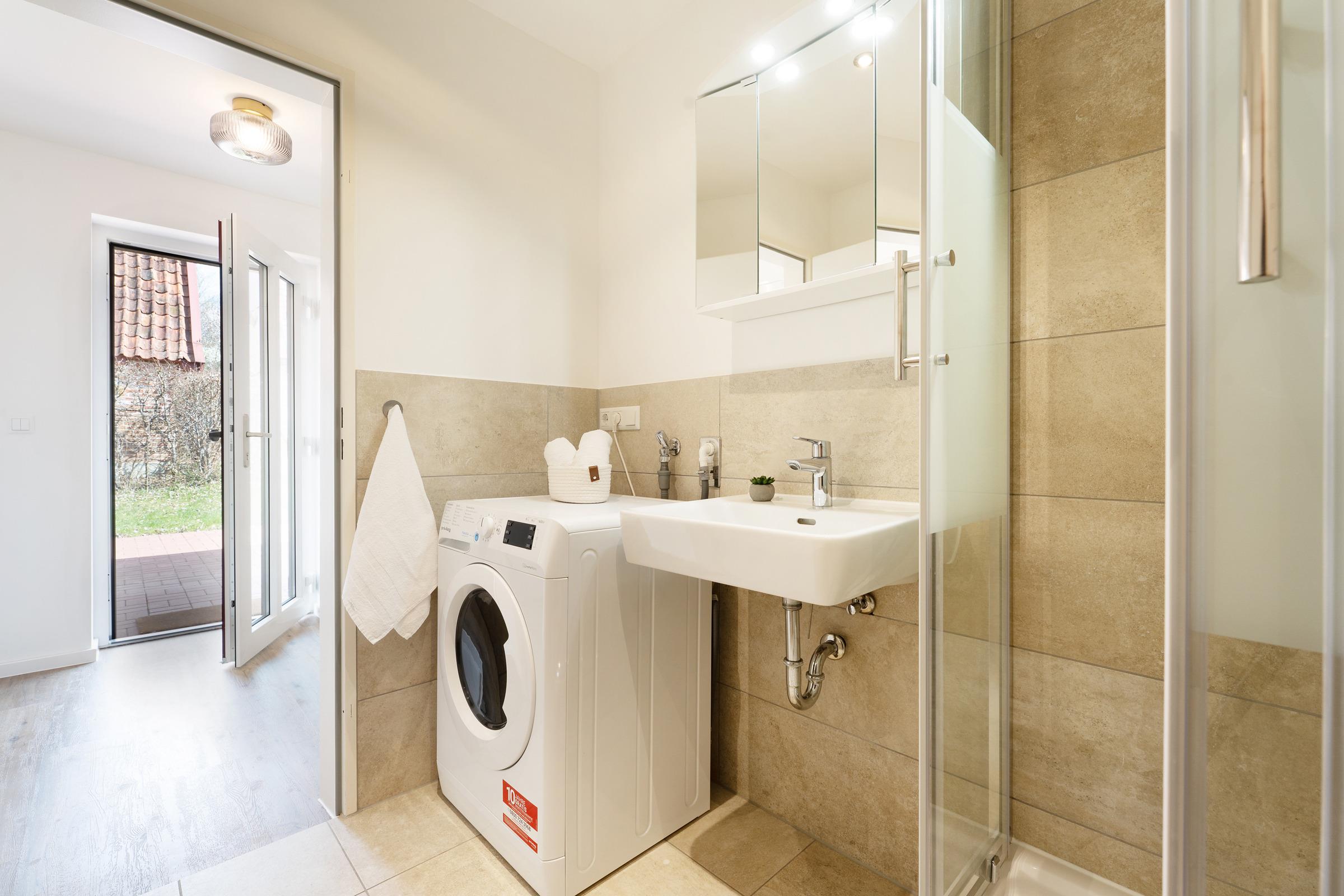 Ein privater PKW-Außenstellplatz steht Ihnen direkt am Haus zur Verfügung. Für Ihre Wäsche ist eine Waschmaschine vorhanden. WLAN ist kostenfrei inklusive.