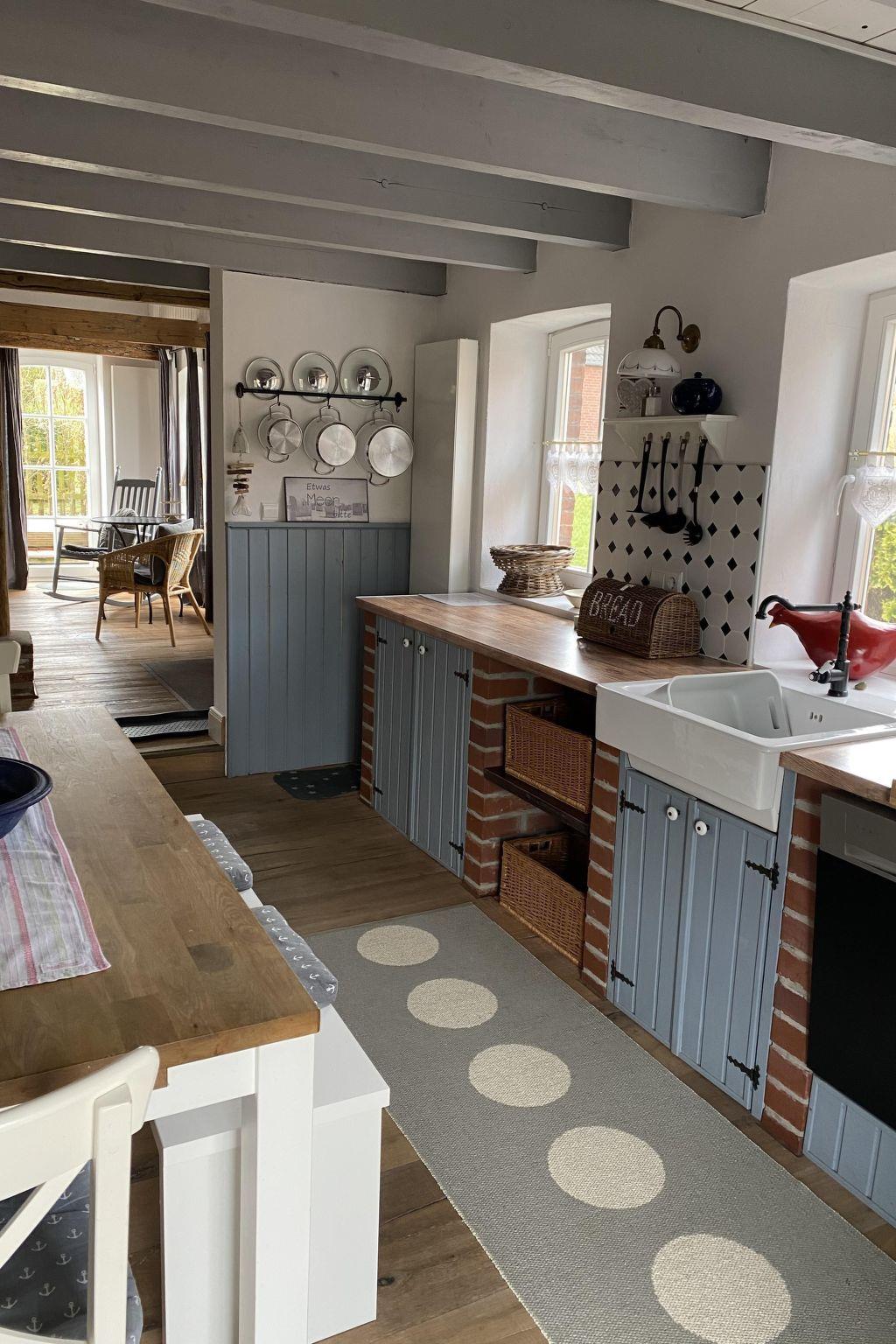 The house offers space for two to four people. It is divided into a very spacious living room and a large kitchen/dining area on the ground floor. The kitchen is equipped with a hob with oven, dishwasher, fridge-freezer, microwave, coffee machine, kettle, toaster, etc. There is also a highchair for children. A high chair for children is also available. The living area is equipped with a fireplace, satellite TV and a stereo system. High-quality oak floorboards have been laid throughout. Old wooden beams have been preserved throughout. They provide additional warmth and cosiness. A very attractive bathroom with two washbasins and a walk-in rain dance shower is also located on the ground floor. An old, listed wooden staircase leads to the upper gallery. Here there are up to two further sleeping possibilities for adults (each 0.80 m x 2.00 m) plus a baby/children's bed. Adjacent to this is the bedroom with a double bed (1.60 m x 2.00 m) and a view of the green East Frisian meadows. An internet connection (WLAN) can be used free of charge.