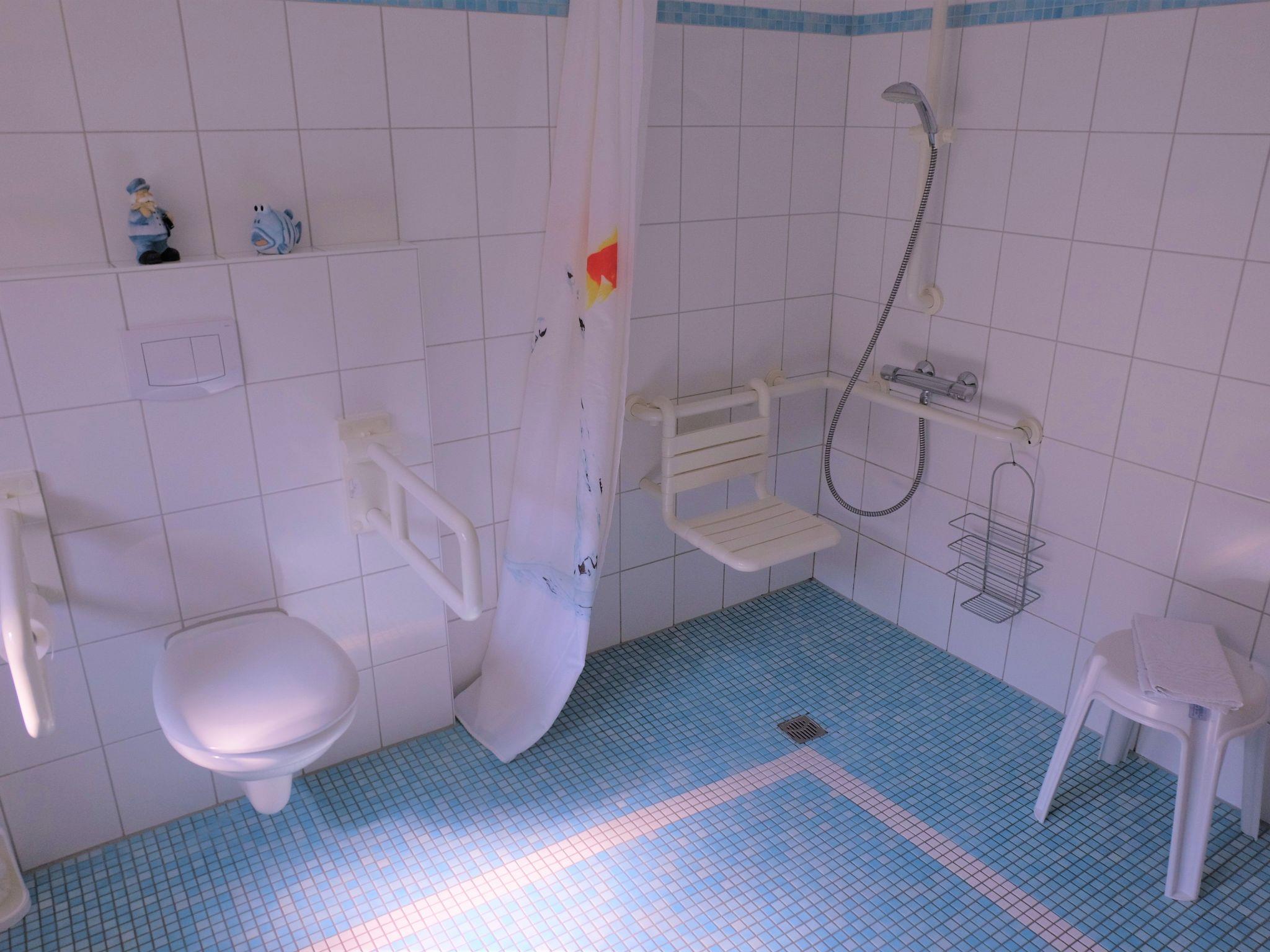 The holiday flat "Leuchtturm" is an accommodation suitable for wheelchair users, which is also very comfortable for everyone else. It is barrier-free and very spacious, especially in the bathroom, and offers you a wonderful view of the dyke and our famous red and yellow Pilsum lighthouse, views over the countryside, large private terrace, all barrier-free and at ground level on the property and the nearby private car park of our guesthouse.