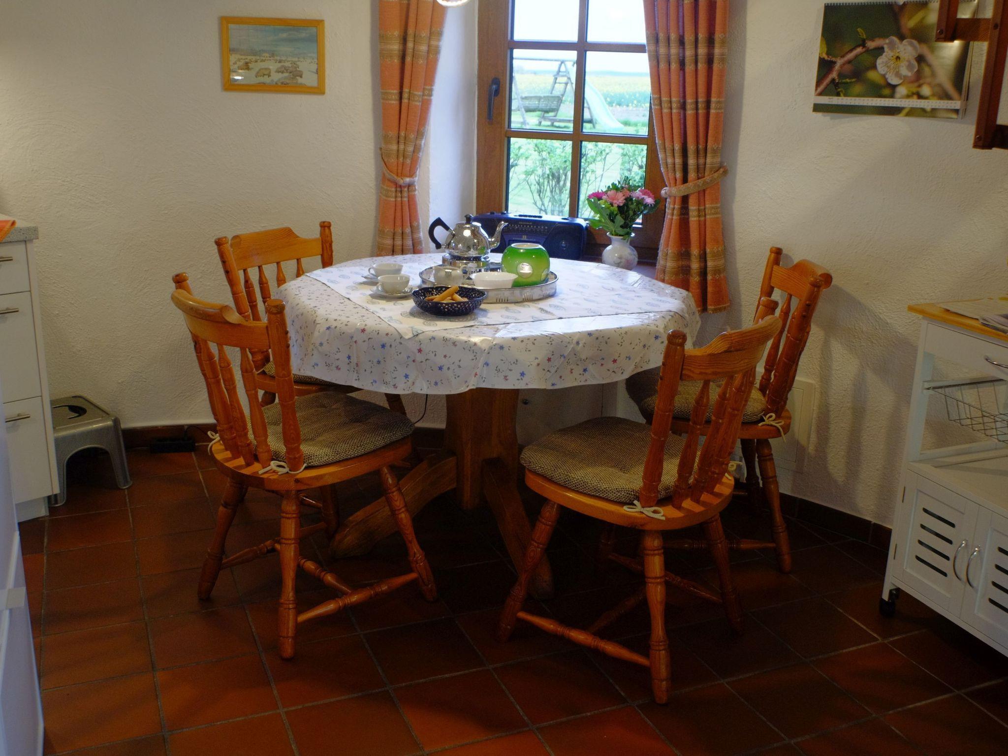 Tower holiday home, 12m high, round, round rooms, one room on each floor, view in all directions over the countryside, bright and modernly equipped, for families. Bright and modernly furnished, suitable for children from 6 years, WLAN in the main house free of charge. All use Washing machine and freezer in the outbuilding for all use. Tumble dryer for a fee in the main house. WLAN only available in the main house, outside breakfast times. WLAN reception close to the main house. Free of charge.