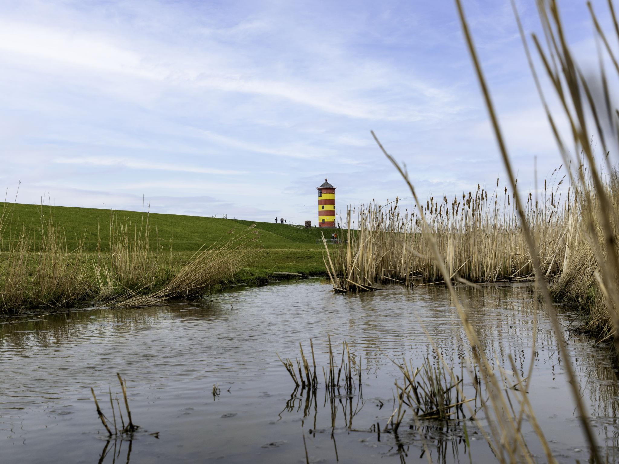 The surroundings of "Huus an`t Dörpdiek" offer a wealth of leisure activities. The charming fishing village of Greetsiel is just a few kilometres away, and the Upleward dry beach invites you to linger with volleyball courts, beach chairs and a large children's playground. Supermarkets, restaurants and medical facilities can be found in nearby Pewsum. The attractive location allows easy access to the towns of Emden, Norden and Norddeich as well as countless opportunities for cycling tours and walks along the dyke, where you can enjoy the vastness of the Wadden Sea.