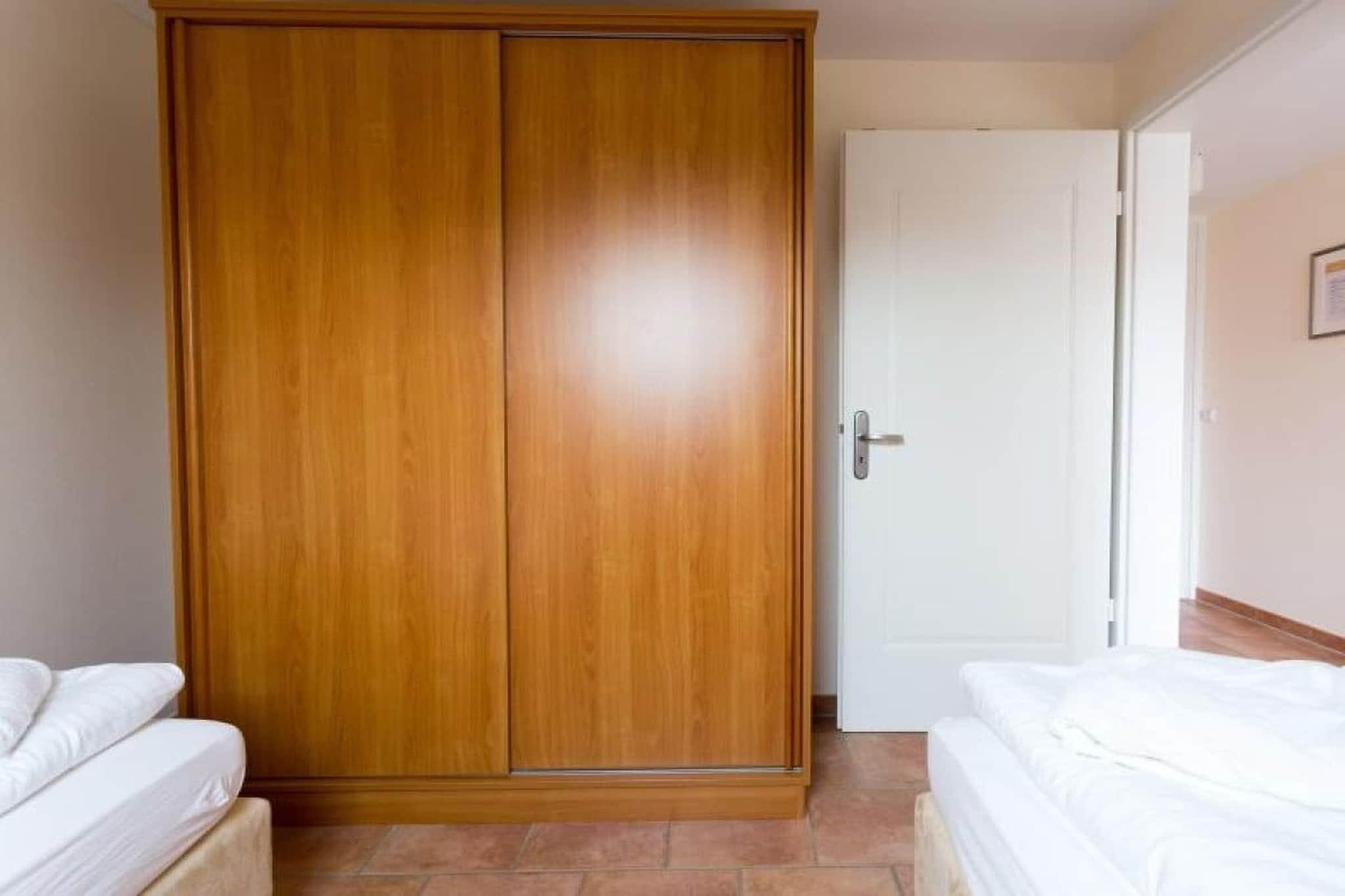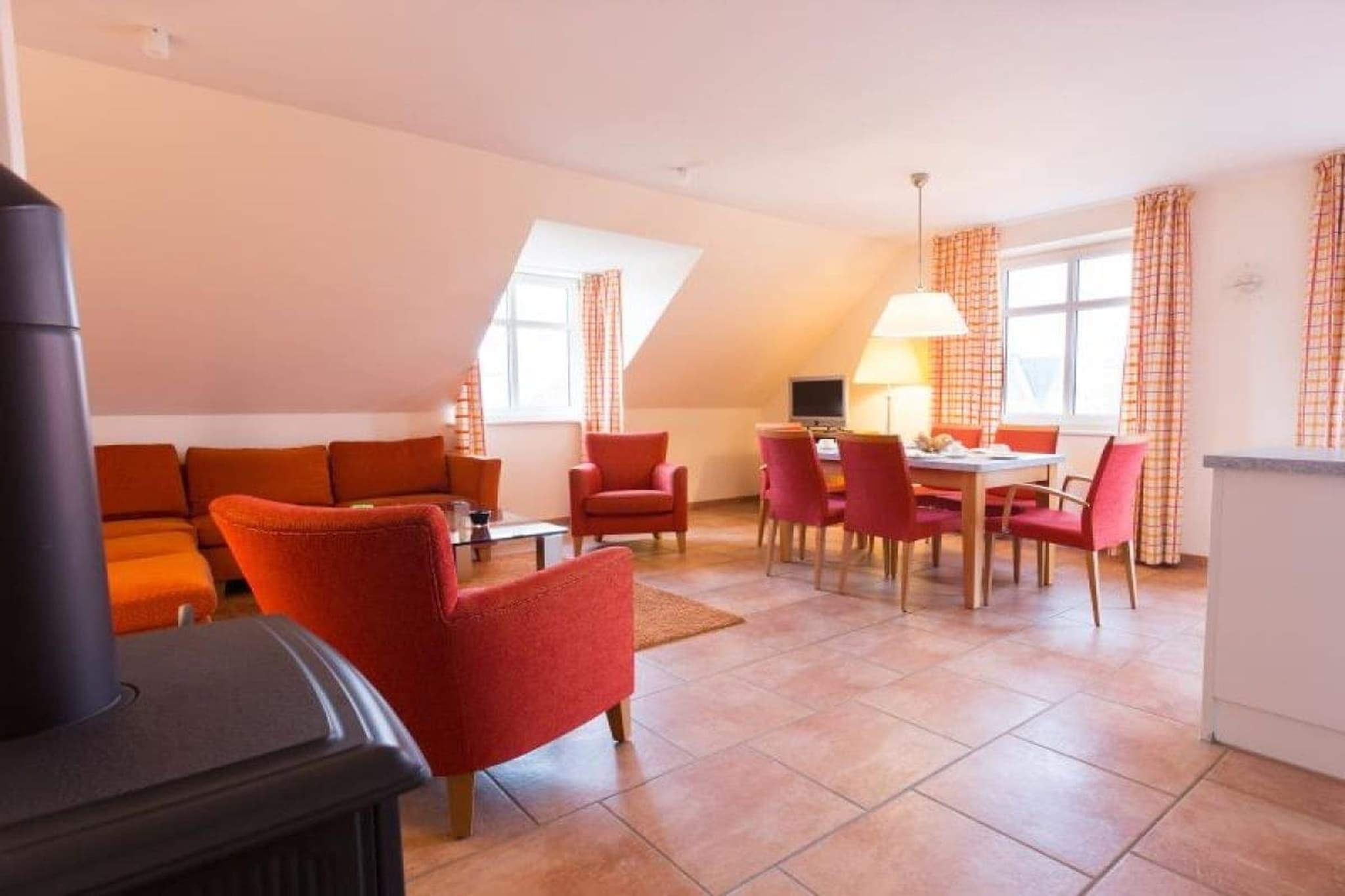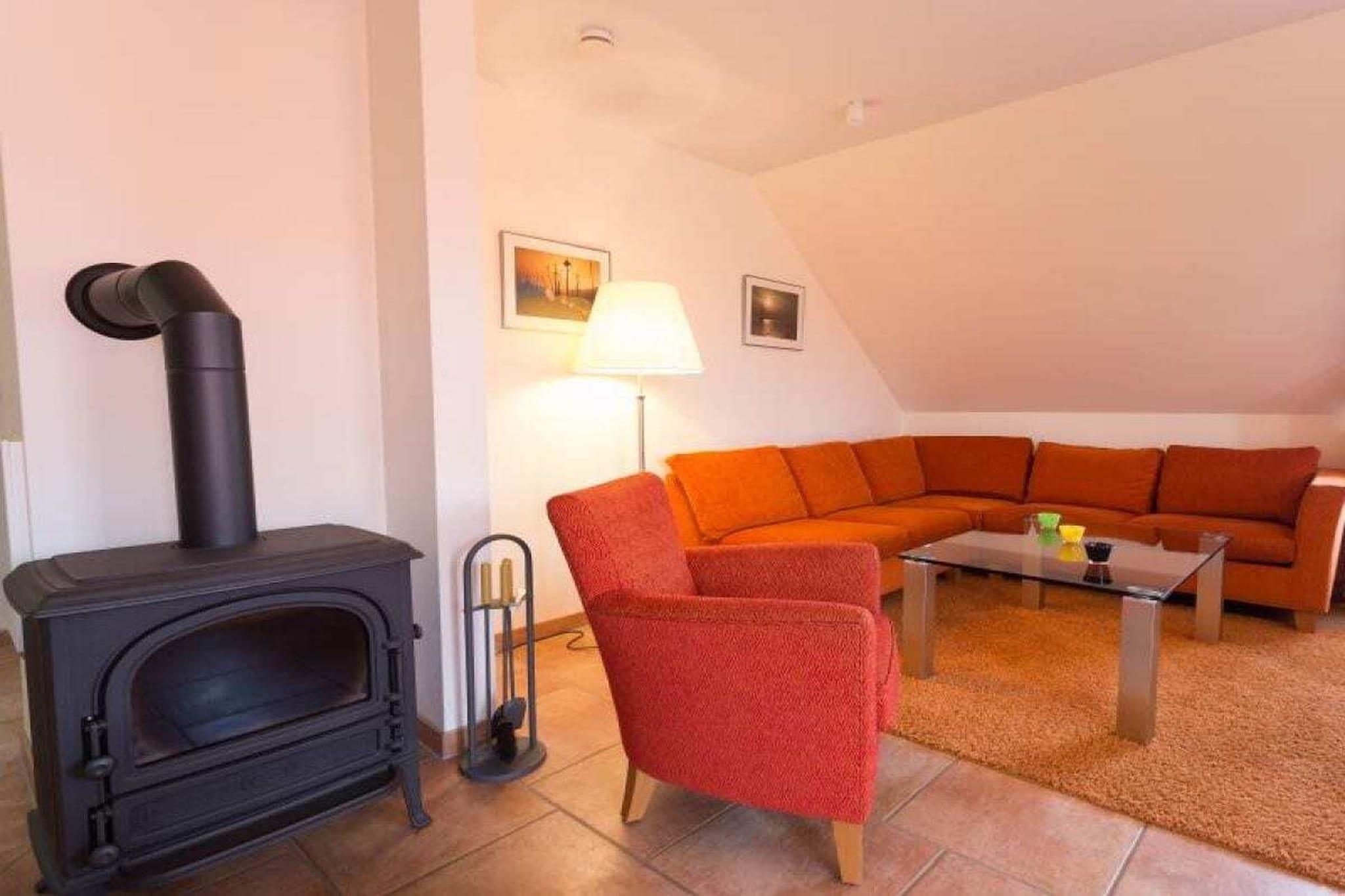 Pilsum-lejligheden, der ligger på øverste etage, er meget stilfuldt og rummeligt møbleret og har 3 soveværelser. Bekvemmelighederne inkluderer et fladskærms-tv i opholdsstuen og et soveværelse, gratis Wi-Fi, radio og dvd-afspiller. En pejs skaber en hyggelig og romantisk atmosfære i de koldere måneder (brænde kan fås efter anmodning). Køkkenet er meget veludstyret og inkluderer opvaskemaskine, keramisk kogeplade, mikrobølgeovn, elkedel, kaffemaskine og brødrister. De 3 badeværelser er elegant møblerede og har hvert badeværelse bruser eller badekar. Der er også hårtørrer og sminkespejl. Lejligheden har en stor balkon og en terrasse i haven med en strandstol direkte på vandet til din eksklusive brug. To robåde ligger ved stedets mole, som kan bruges på ulige dage. En sauna med liggestole og udsigt til naturen er tilgængelig mod et mindre gebyr.