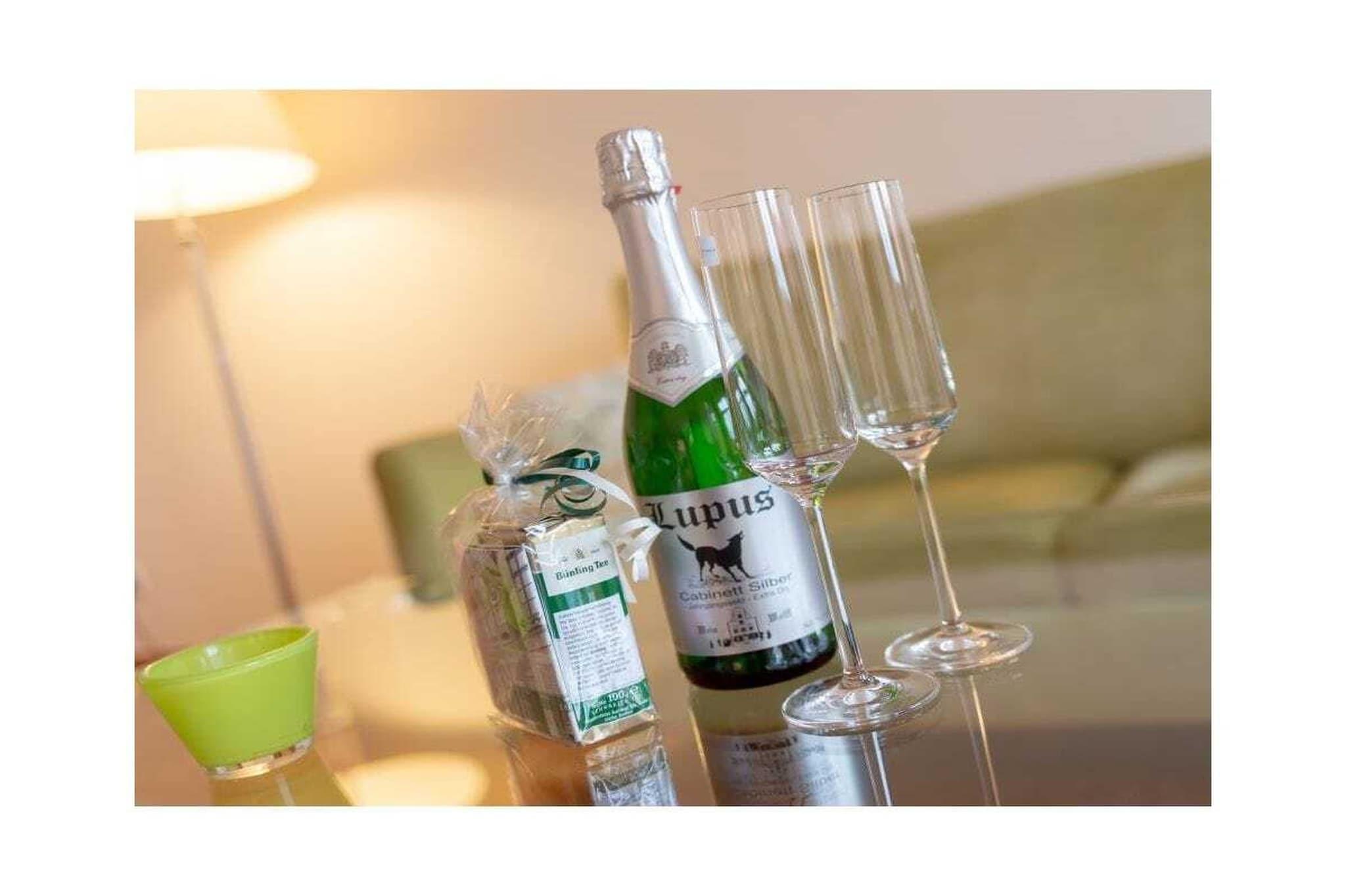 Suurhusen-lejligheden, der ligger i stueetagen, er meget stilfuldt og rummeligt møbleret og har to soveværelser. Bekvemmelighederne inkluderer fladskærms-tv i opholdsstuen og soveværelset, gratis Wi-Fi, radio og dvd-afspiller. En pejs skaber en hyggelig og romantisk atmosfære i de koldere måneder (brænde kan fås efter anmodning). Køkkenet er meget veludstyret og inkluderer opvaskemaskine, keramisk kogeplade, mikrobølgeovn, elkedel, kaffemaskine og brødrister. Badeværelset er elegant møbleret og har bruser og badekar. Der er også hårtørrer og sminkespejl. Lejligheden har en terrasse med en strandstol direkte på vandet til din eksklusive brug. To robåde ligger ved stedets mole, som kan bruges på alle lige dage. En sauna med liggestole og udsigt til naturen er tilgængelig mod et mindre gebyr.