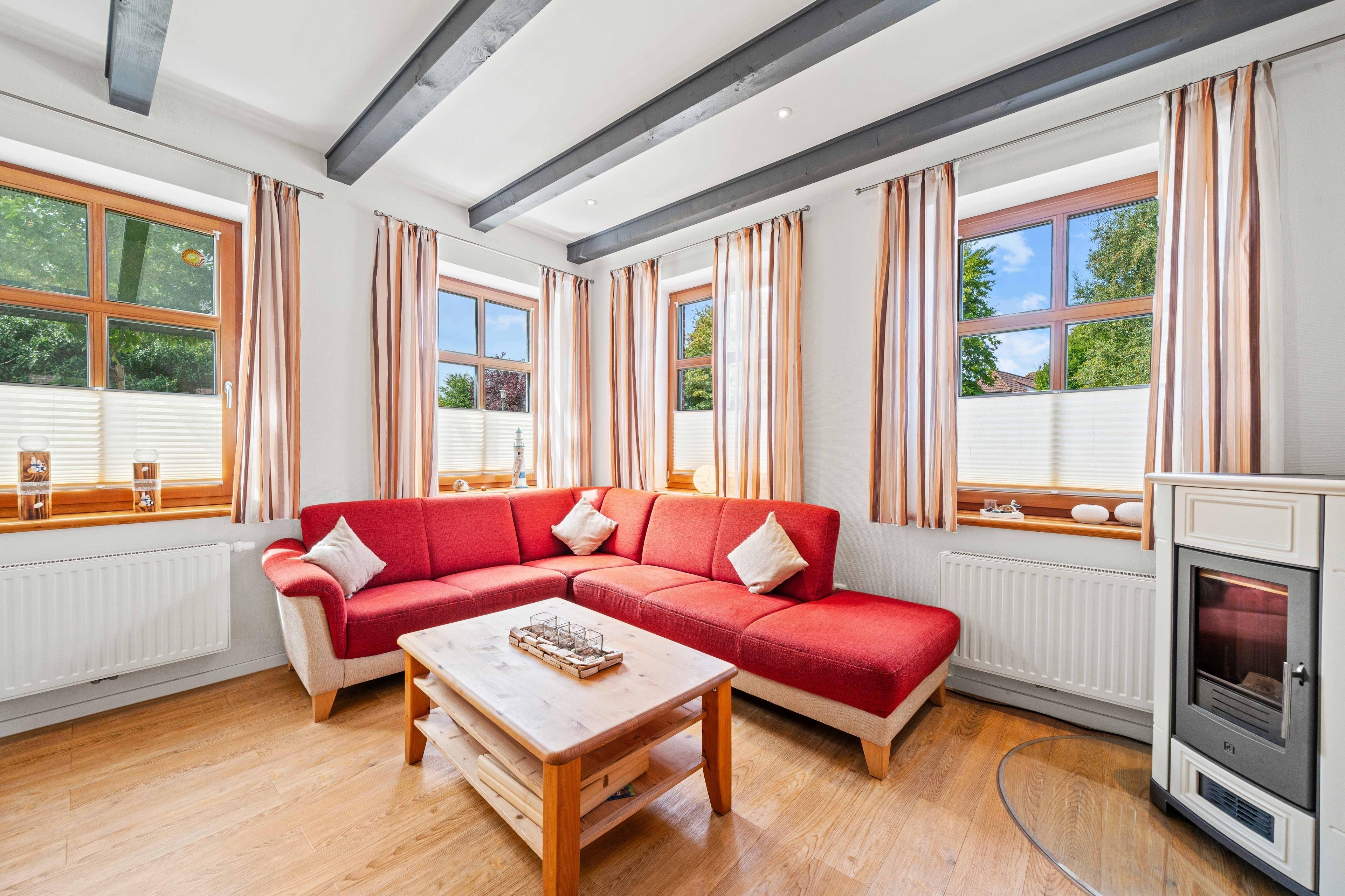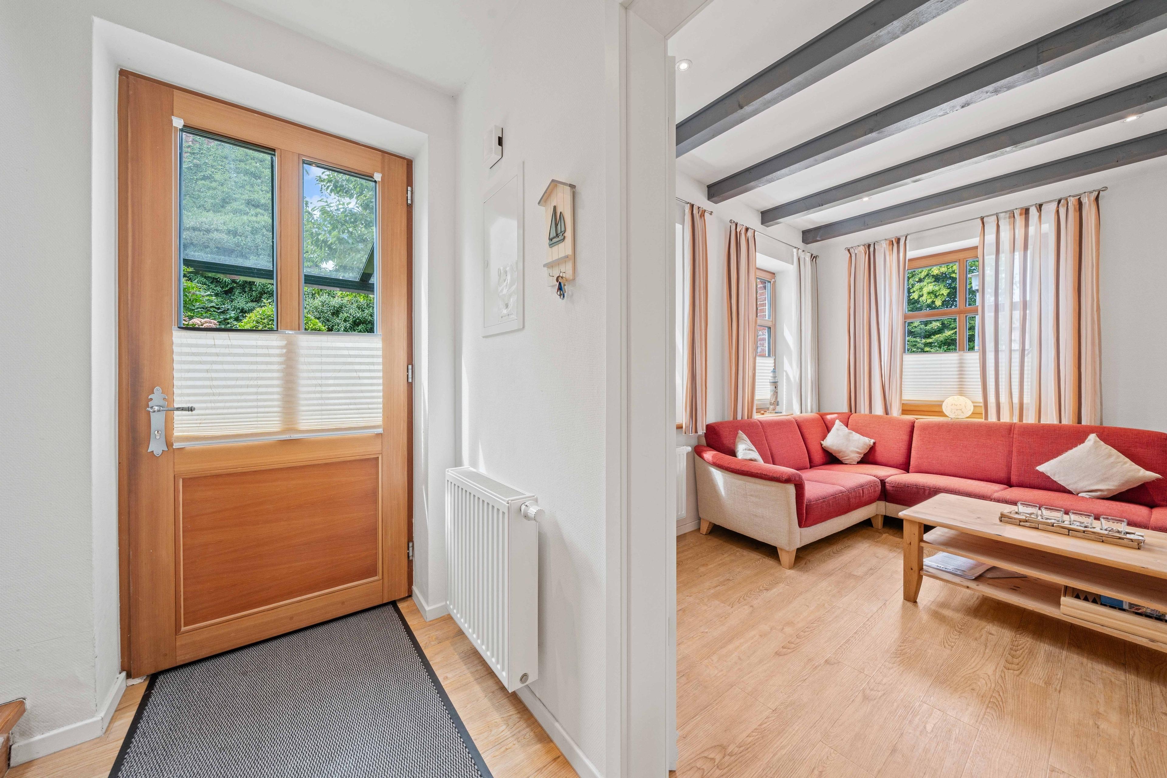 Mitten im historischen Hafen, direkt am Alten Deich 25, liegt die stilvolle Ferienwohnung „Bummert am Hafen Nr. 3“ – eine gemütliche Unterkunft im charmanten Dreigiebelhaus mit nur drei Wohneinheiten. Auf großzügigen 90qm erwartet Sie ein Ort zum Ankommen und Wohlfühlen, ideal für bis zu vier Personen. Die Wohnung besticht durch ihren hellen, offenen Wohnbereich, der mit einem gemütlichen Kamin, einer großen Wohnlandschaft, einem Esstisch und einer modernen Einbauküche ausgestattet und somit das Herzstück der Wohnung ist. Weiterhin bietet die Wohnung im Obergeschoss zwei liebevoll eingerichtete Schlafzimmer mit Doppelbetten. Besonders komfortabel für den gemeinsamen Urlaub mit der Familie oder Freunden sind die beiden Badezimmer, wovon eines mit ebenerdiger Dusche und das andere mit einer Badewanne und einer zusätzlichen Dusche ausgestattet ist. Zur Wohnung gehören außerdem eine überdachte Terrasse, die auch bei norddeutschem Wetter ein geschützter Ort zum Verweilen ist sowie ein PKW-Stellplatz direkt am Haus. Auch ein gemeinschaftlich nutzbarer Waschraum mit Waschmaschine und Trockner ist vorhanden. Somit ist die Wohnung „Bummert am Hafen Nr. 3“ die perfekte Adresse für alle, die Ruhe, Komfort und die Nähe zum Wasser schätzen.