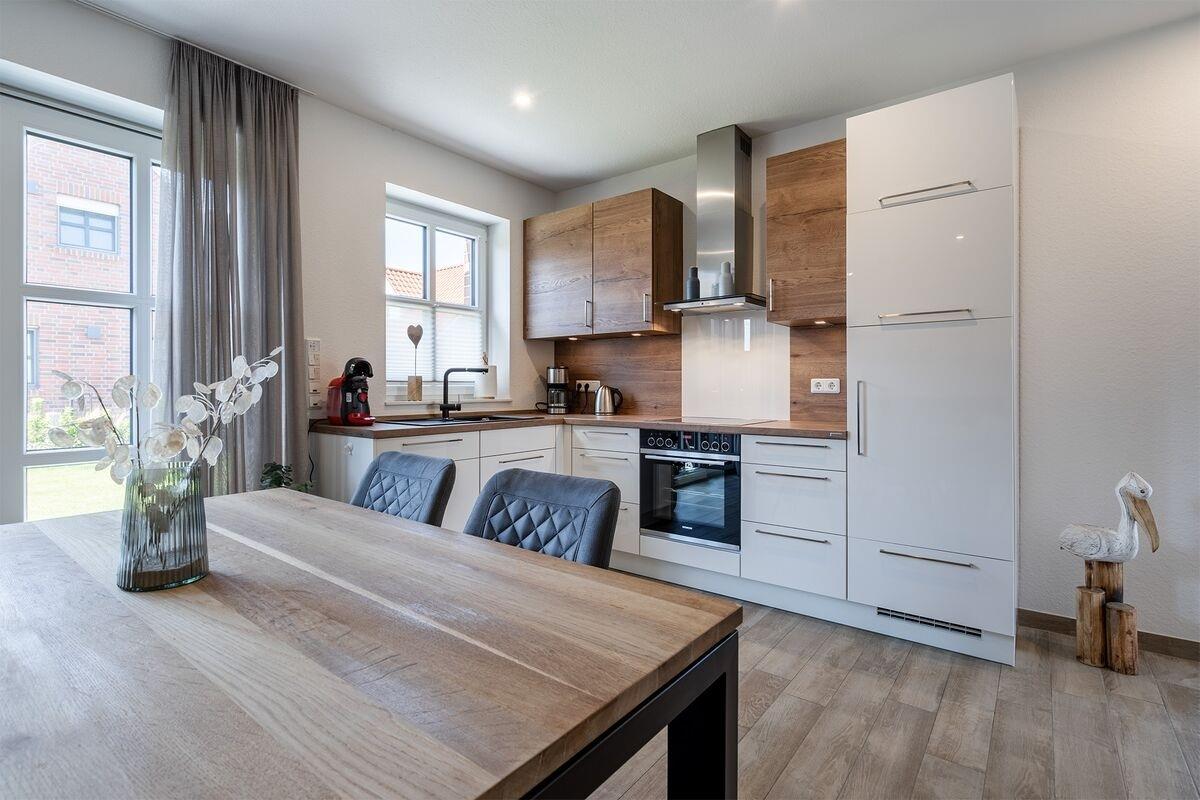 Herzlich willkommen im Ferienhaus "Mia"! Unser 100qm großes Ferienhaus auf zwei Etagen wurde mit viel Liebe speziell für Familien eingerichtet – hier fühlen sich Groß und Klein von der ersten Minute an wohl. Mit drei geräumigen Schlafzimmern und zwei modernen Tageslichtbädern (jeweils eines im Erd- und Obergeschoss) bietet das Haus genügend Platz für Eltern, Kinder und sogar Großeltern oder Freunde. Der lichtdurchflutete Wohnbereich mit hochwertiger Küchenzeile ist das Herzstück des Hauses – perfekt für gemeinsames Kochen, Spielen und Kuschelabende. Eine Auswahl an Kinderspielzeug im Innenbereich sorgt dafür, dass keine Langeweile aufkommt, außerdem ist die Treppe beidseitig durch Gitter abgesichert. Draußen wird das Ferienhaus "Mia" zum wahren Kinderparadies: Der große, komplett eingezäunte Garten bietet Sicherheit und Freiheit zugleich. Ein hochwertiges, bodengleiches Berg-Trampolin, Klettergerüst mit Schaukel und viel Platz zum Toben und Fußball spielen lassen Kinderherzen höherschlagen. Währenddessen können die Eltern auf der vollüberdachten Terrasse entspannen – bei Sonne wie bei Regen. Neben Zwei Parkplätzen steht außerdem ein separater Fahrradabstellraum zur Verfügung. Das Haus mit unverbautem Feldblick liegt ruhig fernab vom Durchgangsverkehr, aber dennoch nah genug, um den charmanten Ortskern und den Hafen bequem zu erreichen. Ideal für Familien, die Erholung und Abenteuer miteinander verbinden möchten. Ferienhaus Mia – wo Kinder glücklich sind und Eltern zur Ruhe kommen.