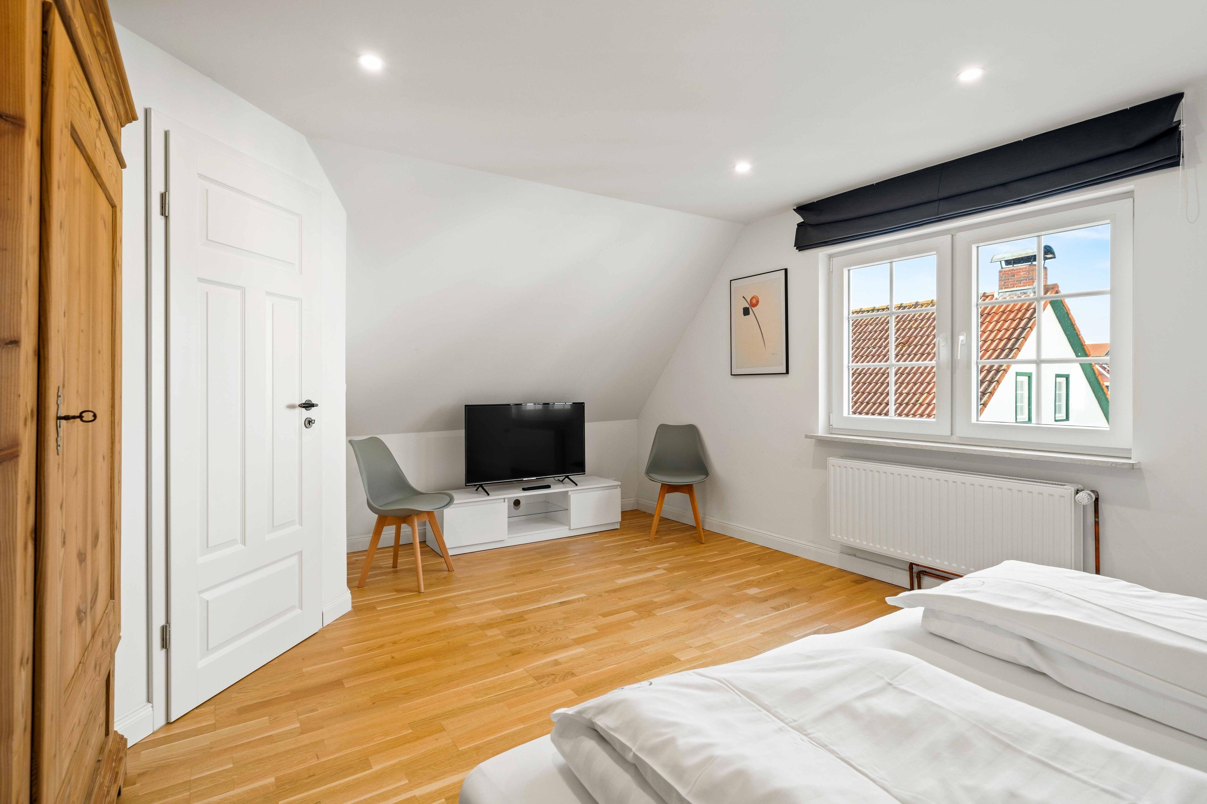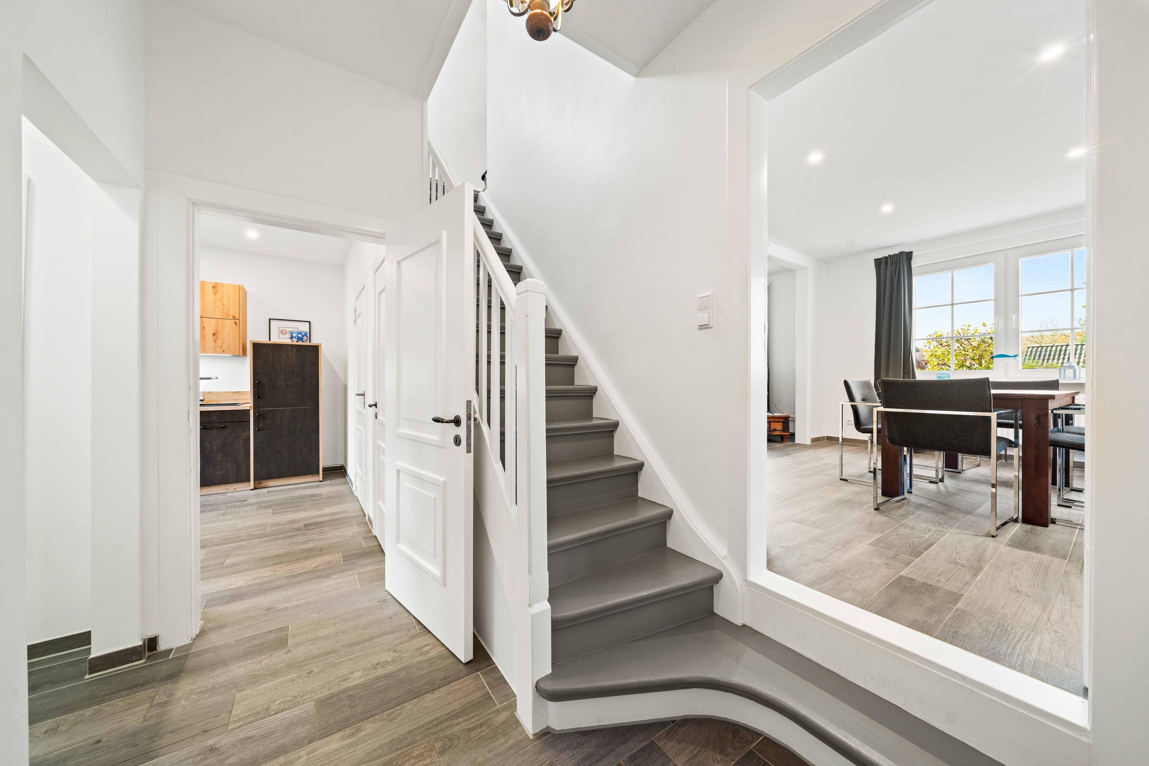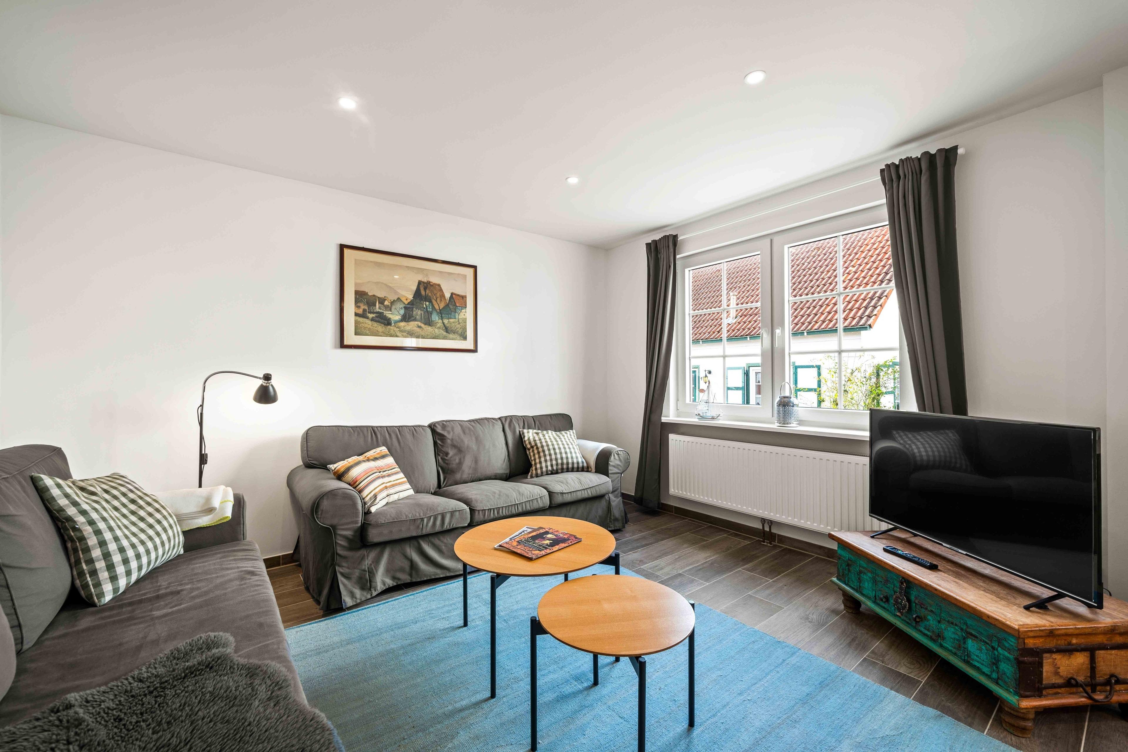 Willkommen im Ferienhaus "Susanne", einem historischen Fischerhaus aus 1957. Das Haus befindet sich im traditionsreichen Herrenhof, einer Top-Lage direkt im Ortskern. Kurze Wege führen Sie von hier aus zu den malerischen Gassen, den kleinen Geschäften, Restaurants und natürlich zum Hafen. Zentraler geht es kaum – und dennoch genießen Sie Ruhe und Privatsphäre. Das komplett sanierte Ferienhaus bietet 100qm Wohnfläche auf zwei Etagen und ist ideal für Paare, kleine Familien oder Freunde. Im Erdgeschoss befindet sich ein modernes Tageslichtbad mit ebenerdiger Dusche und eine voll ausgestattete, separate Küche mit Sitzmöglichkeiten an einer Bar und direktem Zugang zur Terrasse. Im Wohnbereich finden Sie einen großen Esstisch, sowie eine gemütliche Wohnlandschaft. Ein zusätzliches Gäste-WC rundet das Angebot ab. Die beiden Schlafzimmer mit Doppelbetten im Obergeschoss bieten erholsamen Schlaf und genügend Stauraum für Ihr Gepäck. Neben der Terrasse finden Sie im umzäunten Außenbereich außerdem einen Fahrradabstellraum.