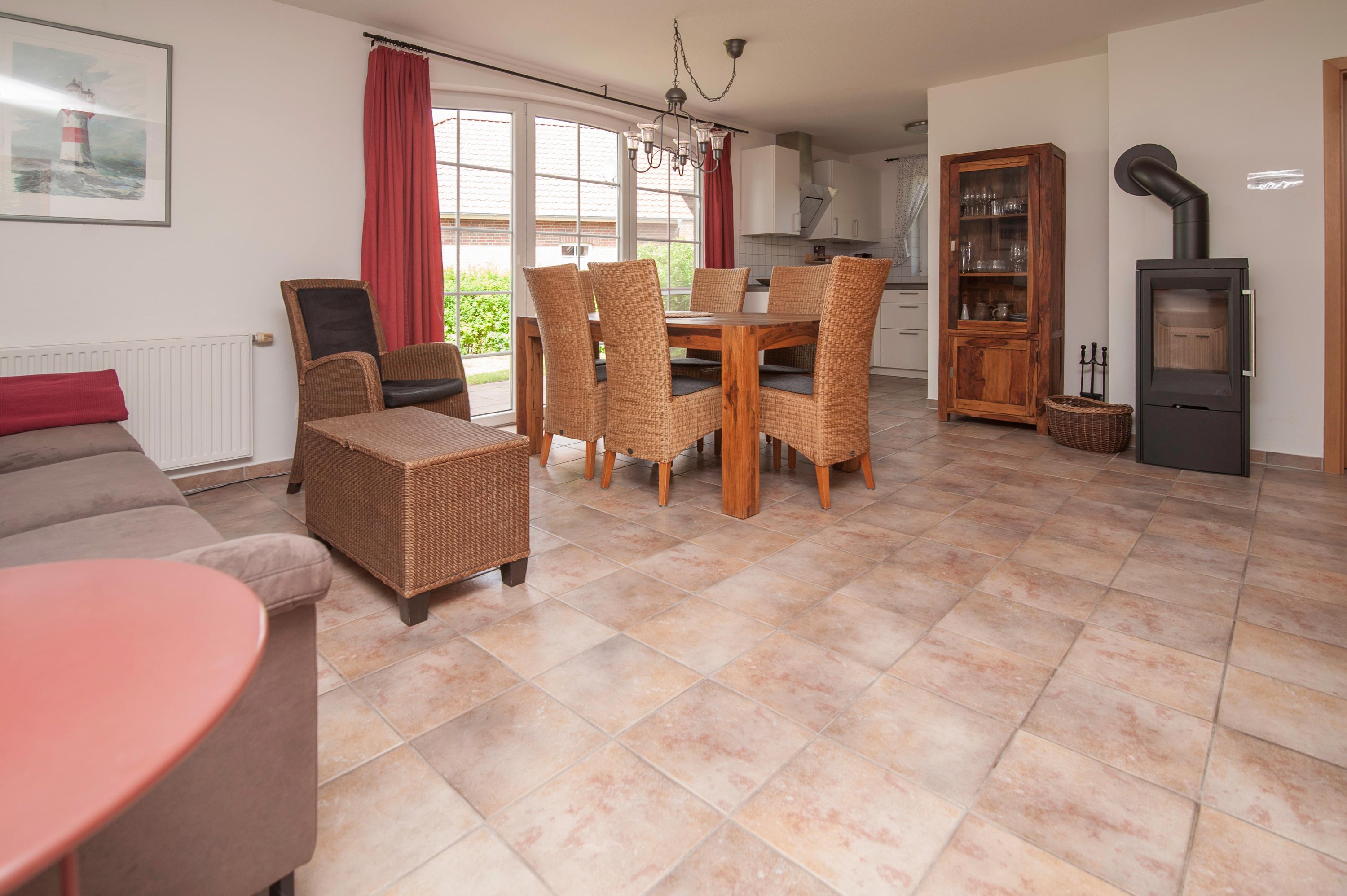 Fußbodenheizung, Essplatz für 6 Personen, Sofa und Sessel, Kaminofen, 32"Metz Full-HD LCD-TV, CD-Player, Radio, ein DSL WLAN-Gastzugang ist vorhanden