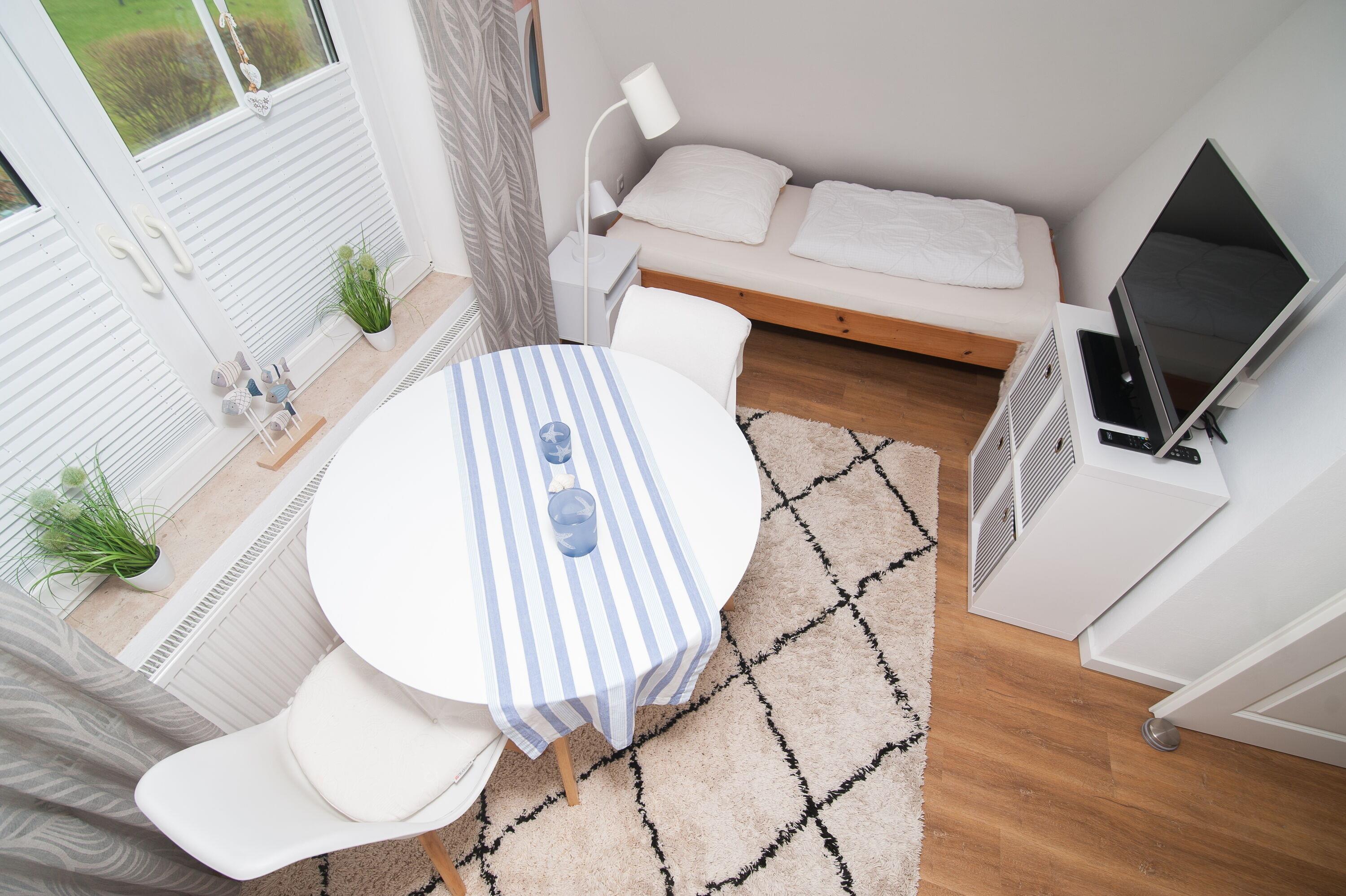 WLAN-Gastzugang (schnelles und stabiles Glasfaser-Internet) Voll ausgestattete Einbauküche, u.a. Herd mit Cerankochfeld, Dunstabzugshaube, Mikrowelle, Geschirrspüler, Kühlschrank mit Gefrierfach, Filterkaffee und Kaffee-Padmaschine, Toaster, Wasserkocher und vielem mehr.